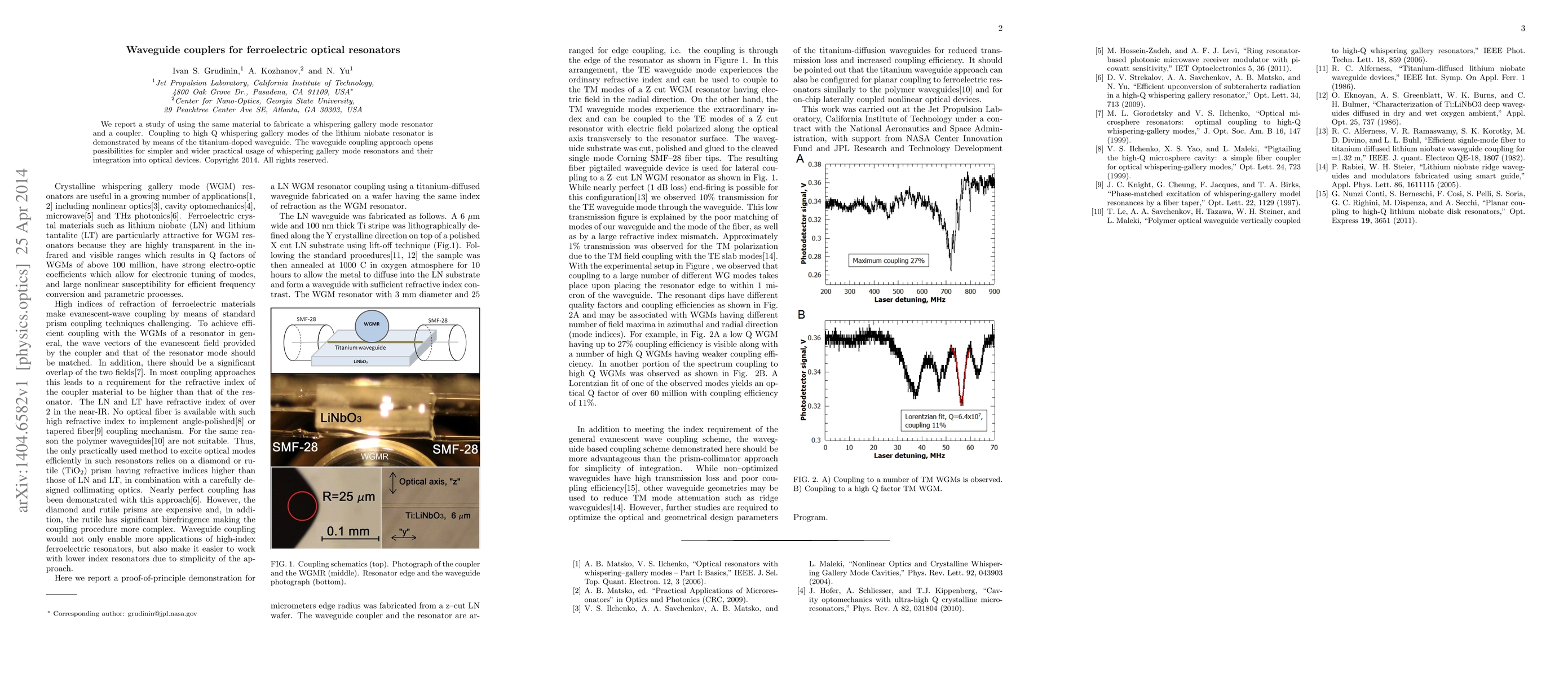This paper investigates the fabrication of a whispering gallery mode resonator and a coupler using the same material, demonstrating efficient coupling to high Q modes in a lithium niobate resonator via titanium-doped waveguides, which could simplify the integration of these resonators into optical devices.