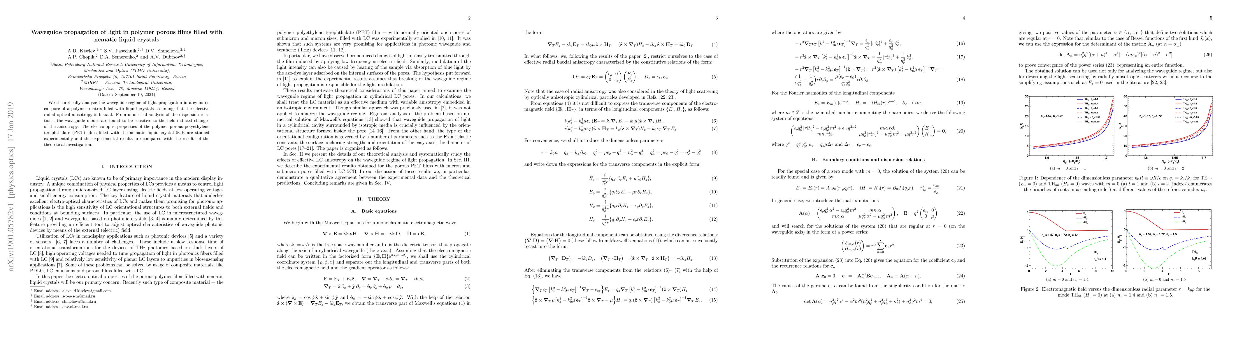 Researchers studied the propagation of light through polymer porous films filled with liquid crystals, finding that waveguide modes can change in response to electric fields. Experimental results were compared to theoretical analysis for a specific type of polymer and liquid crystal material.