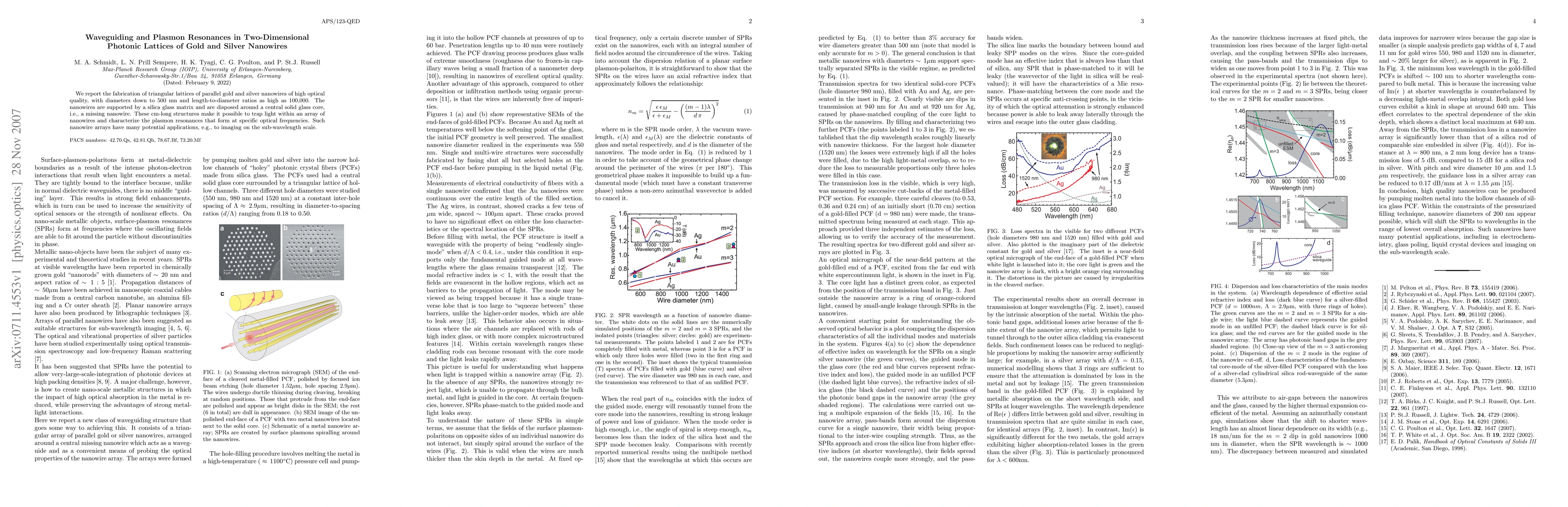 This paper details the fabrication of high-quality triangular lattices of gold and silver nanowires, enabling waveguiding and trapping light to study plasmon resonances at specific optical frequencies. These cm-long structures hold potential for sub-wavelength scale imaging applications.