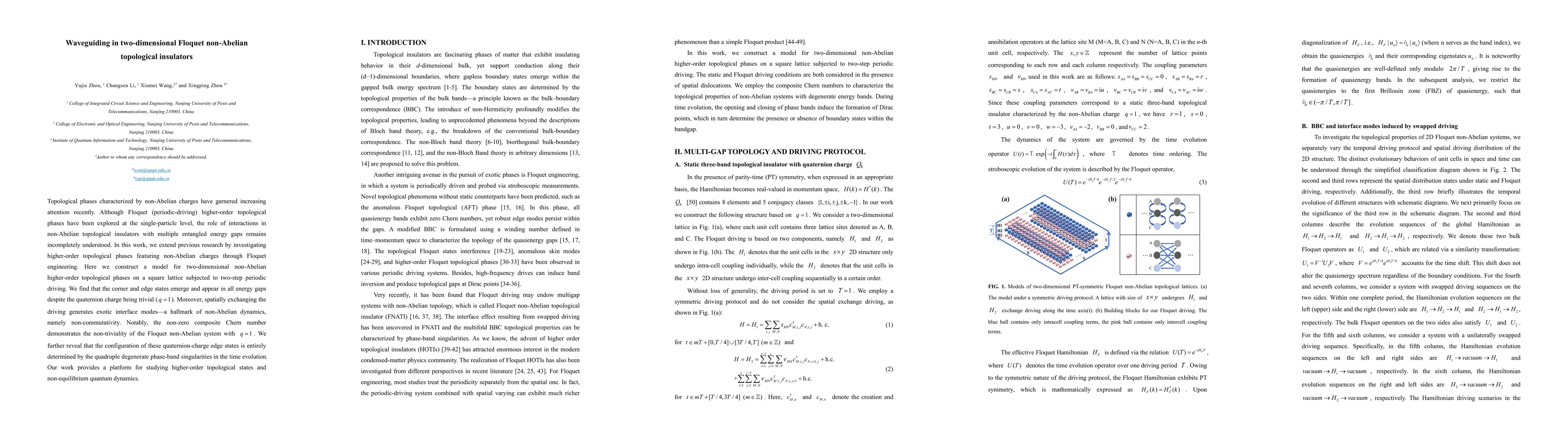 Topological phases characterized by non-Abelian charges have garnered increasing attention recently. Although Floquet (periodic-driving) higher-order topological phases have been explored at the single-particle level, the role of interactions in non-Abelian topological insulators with multiple entangled energy gaps remains incompletely understood. In this work, we extend previous research by investigating higher-order topological phases featuring non-Abelian charges through Floquet engineering. Here we construct a model for two-dimensional non-Abelian higher-order topological phases on a square lattice subjected to two-step periodic driving. We find that the corner and edge states emerge and appear in all energy gaps despite the quaternion charge being trivial. Moreover, spatially exchanging the driving generates exotic interface modes-a hallmark of non-Abelian dynamics, namely non-commutativity. Notably, the non-zero composite Chern number demonstrates the non-triviality of the Floquet non-Abelian system with. We further reveal that the configuration of these quaternion-charge edge states is entirely determined by the quadruple degenerate phase-band singularities in the time evolution. Our work provides a platform for studying higher-order topological states and non-equilibrium quantum dynamics.