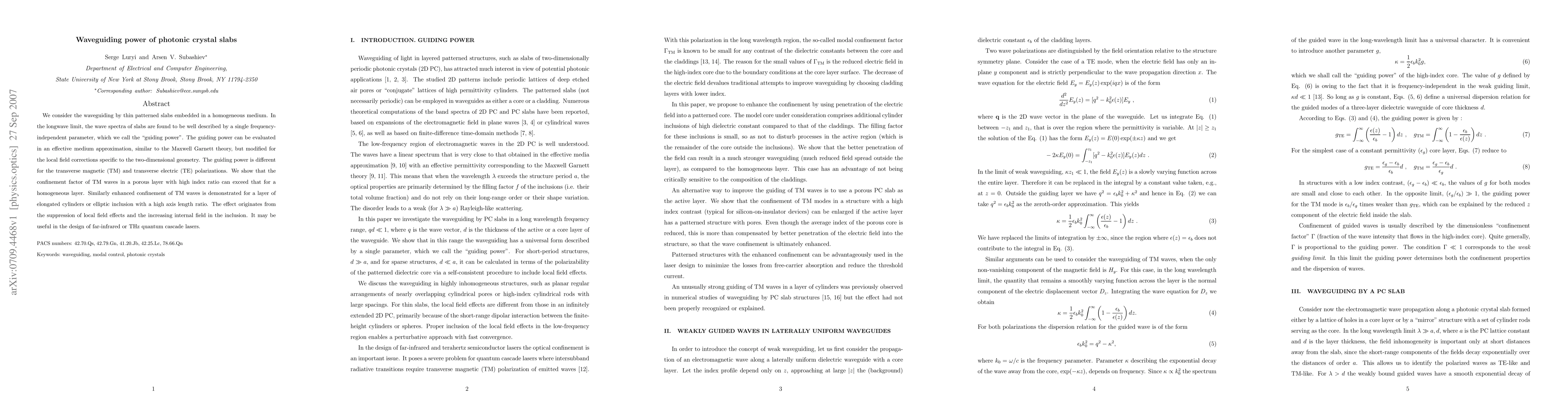 We consider the waveguiding by thin patterned slabs embedded in a homogeneous medium. In the longwave limit, the wave spectra of slabs are found to be well described by a single frequency-independent parameter, which we call the "guiding power". The guiding power can be evaluated in an effective medium approximation, similar to the Maxwell Garnett theory, but modified for the local field corrections specific to the two-dimensional geometry. The guiding power is different for the transverse magnetic (TM) and transverse electric (TE) polarizations. We show that the confinement factor of TM waves in a porous layer with high index ratio can exceed that for a homogeneous layer. Similarly enhanced confinement of TM waves is demonstrated for a layer of elongated cylinders or elliptic inclusion with a high axis length ratio. The effect originates from the suppression of local field effects and the increasing internal field in the inclusion. It may be useful in the design of far-infrared or THz quantum cascade lasers.