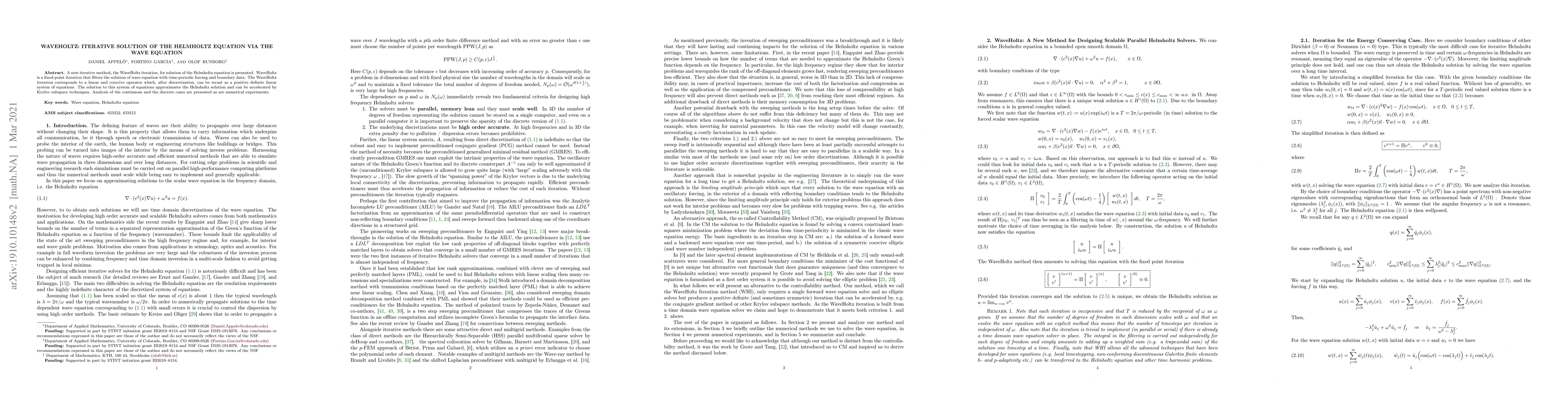 Summary: WaveHoltz presents an innovative iterative method for solving the Helmholtz equation by filtering wave equation solutions with harmonic data. This approach corresponds to a coercive operator, ensuring stability and convergence in the discretized form.