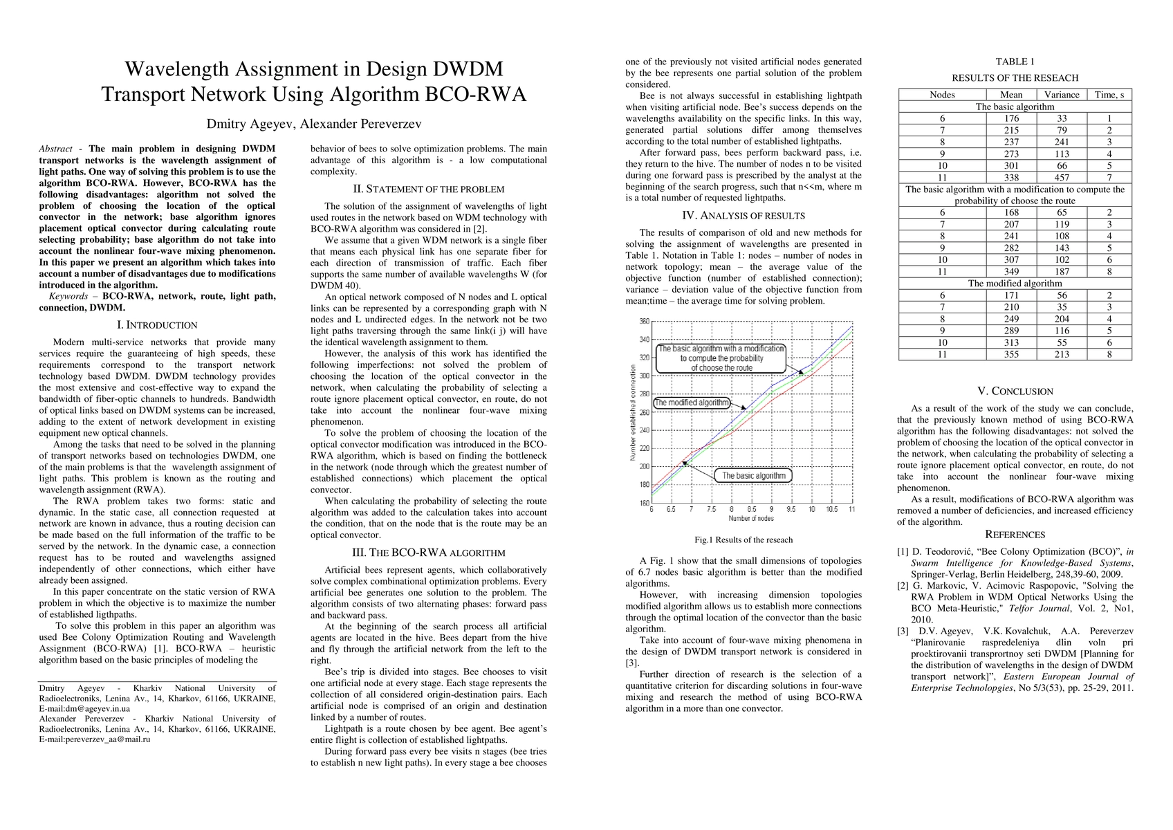 This paper proposes a modified BCO-RWA algorithm for wavelength assignment in DWDM transport networks, addressing issues like optical convector placement and nonlinear four-wave mixing, which were previously ignored by the original algorithm. The new approach aims to improve the efficiency and accuracy of light path routing.