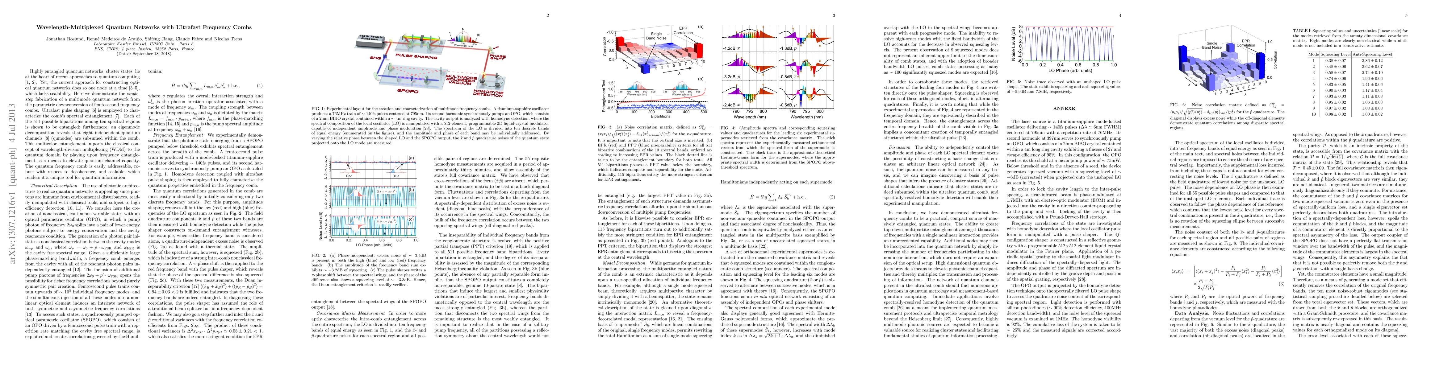 Highly entangled quantum networks cluster states lie at the heart of recent approaches to quantum computing \cite{Nielsen2006,Lloyd2012}. Yet, the current approach for constructing optical quantum networks does so one node at a time \cite{Furusawa2008,Furusawa2009,Peng2012}, which lacks scalability. Here we demonstrate the \emph{single-step} fabrication of a multimode quantum network from the parametric downconversion of femtosecond frequency combs. Ultrafast pulse shaping \cite{weiner2000} is employed to characterize the comb's spectral entanglement \cite{vanLoock2003}. Each of the 511 possible bipartitions among ten spectral regions is shown to be entangled; furthermore, an eigenmode decomposition reveals that eight independent quantum channels \cite{Braunstein2005} (qumodes) are subsumed within the comb. This multicolor entanglement imports the classical concept of wavelength-division multiplexing (WDM) to the quantum domain by playing upon frequency entanglement as a means to elevate quantum channel capacity. The quantum frequency comb is easily addressable, robust with respect to decoherence, and scalable, which renders it a unique tool for quantum information.