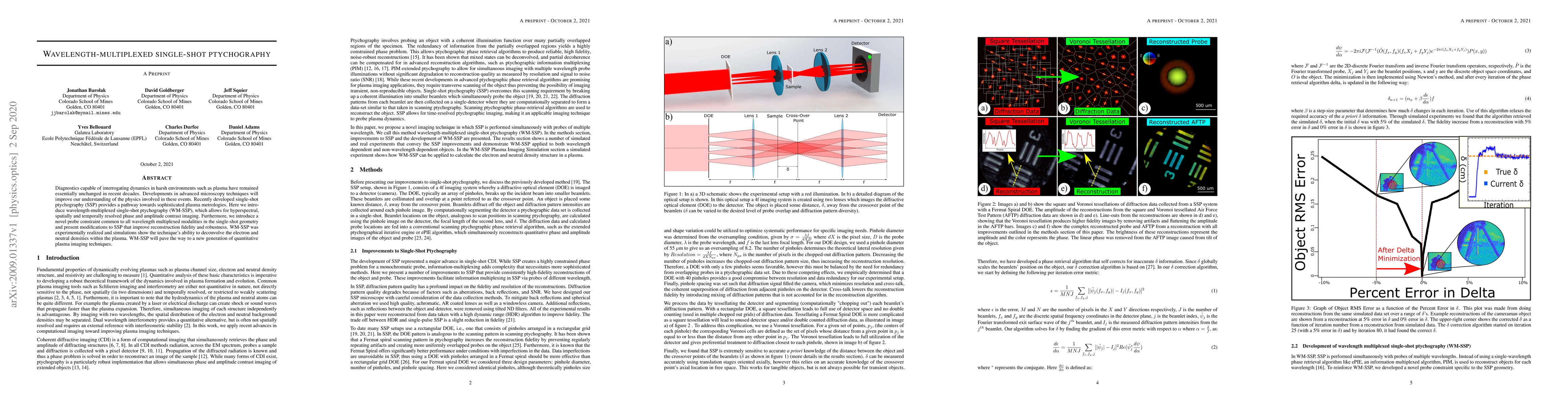 This paper introduces wavelength-multiplexed single-shot ptychography (WM-SSP), a novel technique for hyperspectral, spatially and temporally resolved imaging in harsh environments like plasma. The method enhances reconstruction fidelity and robustness, enabling deconvolution of electron and neutral densities, thus paving the way for advanced plasma diagnostics.