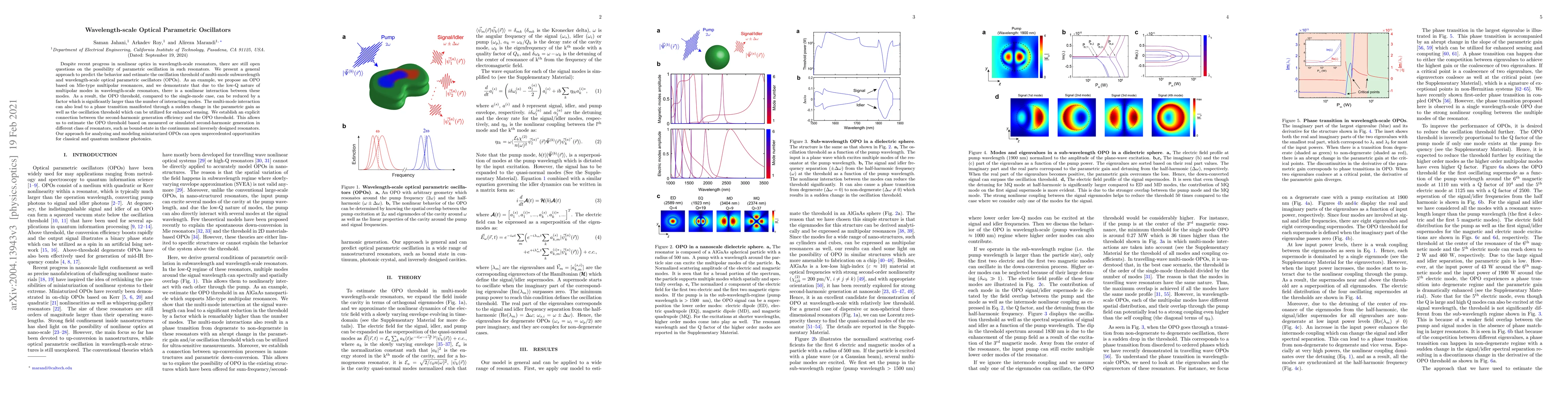 Despite recent progress in nonlinear optics in wavelength-scale resonators, there are still open questions on the possibility of parametric oscillation in such resonators. We present a general approach to predict the behavior and estimate the oscillation threshold of multi-mode subwavelength and wavelength-scale optical parametric oscillators (OPOs). As an example, we propose an OPO based on Mie-type multipolar resonances, and we demonstrate that due to the low-Q nature of multipolar modes in wavelength-scale resonators, there is a nonlinear interaction between these modes. As a result, the OPO threshold, compared to the single-mode case, can be reduced by a factor that is significantly larger than the number of interacting modes. The multi-mode interaction can also lead to a phase transition manifested through a sudden change in the parametric gain as well as the oscillation threshold, which can be utilized for enhanced sensing. We establish an explicit connection between the second-harmonic generation efficiency and the OPO threshold. This allows us to estimate the OPO threshold based on measured or simulated second-harmonic generation in different classes of resonators, such as bound states in the continuum and inversely designed resonators. Our approach for analyzing and modeling miniaturized OPOs can open unprecedented opportunities for classical and quantum nonlinear photonics.