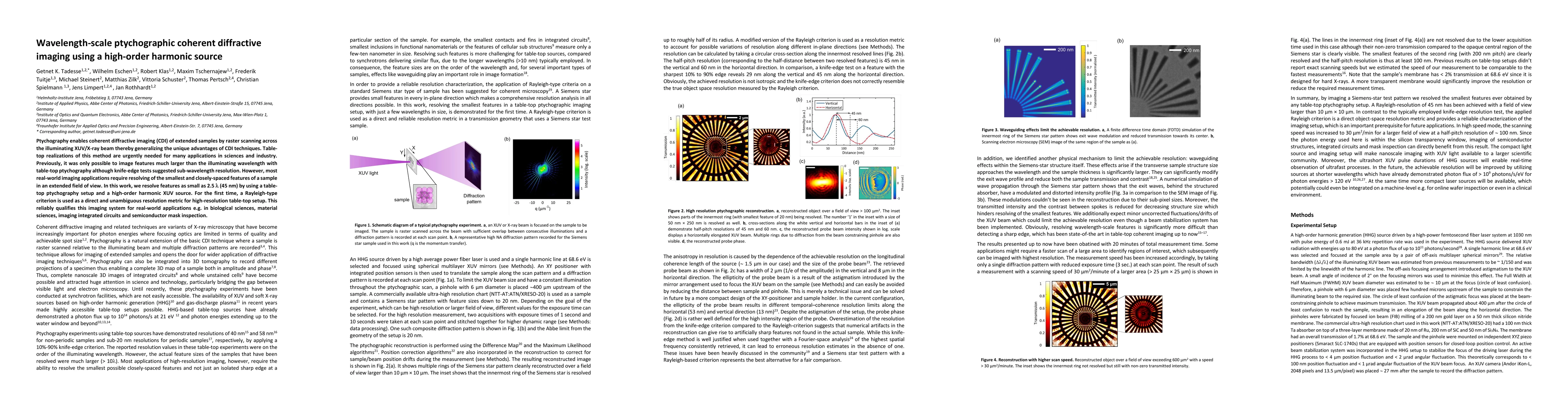 This paper presents a table-top ptychographic coherent diffractive imaging system using a high-order harmonic source that achieves 2.5λ (45 nm) resolution, enabling the imaging of small and closely-spaced features in extended samples, and demonstrating its potential for applications in various scientific fields.