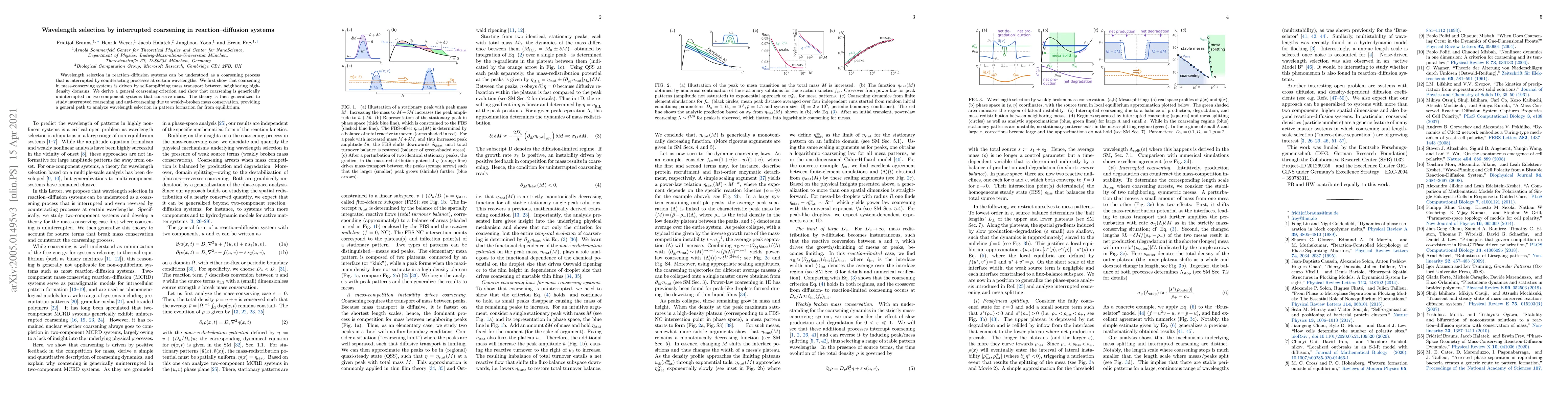 This paper explores wavelength selection in reaction-diffusion systems through interrupted coarsening, demonstrating that mass transport drives coarsening in mass-conserving systems. It introduces a general coarsening criterion and extends the theory to account for weakly-broken mass conservation, offering insights into pattern formation mechanisms far from equilibrium.