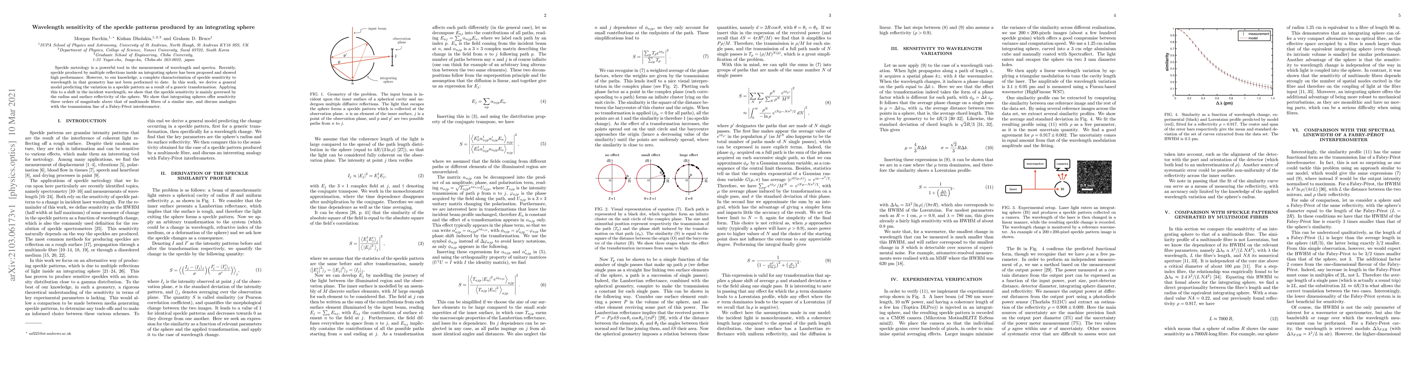 This study reveals that integrating spheres exhibit high sensitivity to wavelength changes in speckle patterns, outperforming multimode fibers by three orders of magnitude, due to their radius and surface reflectivity properties.
