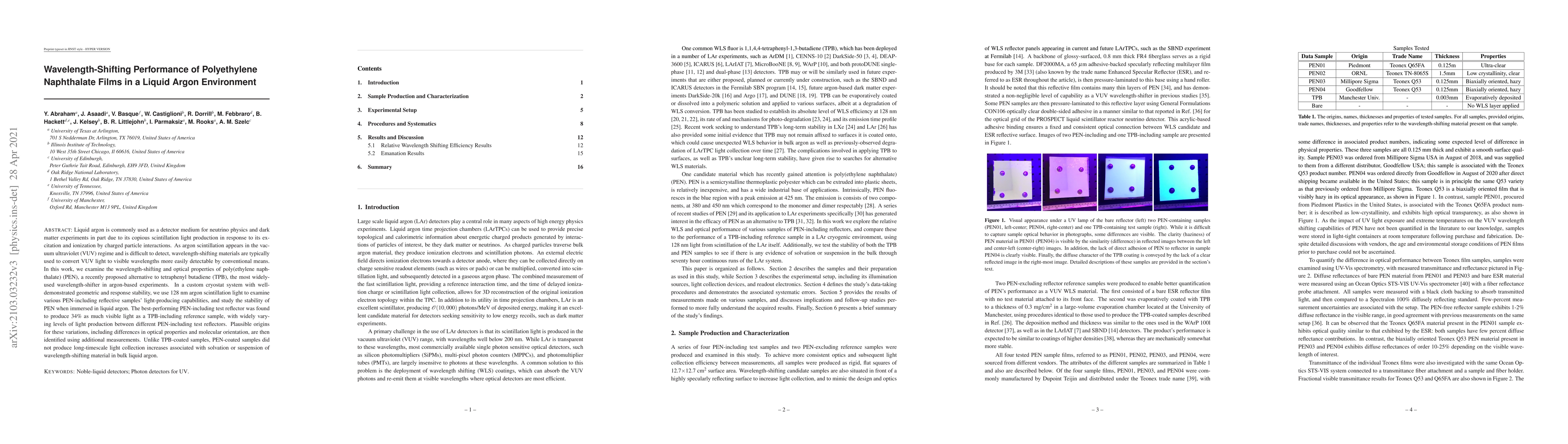 This research is significant for future large-scale liquid argon particle detectors, as it explores an easily applicable, cost-effective wavelength-shifter material, PEN, which exhibits comparable performance to TPB and does not emanate substantial WLS material into the liquid argon bulk.
