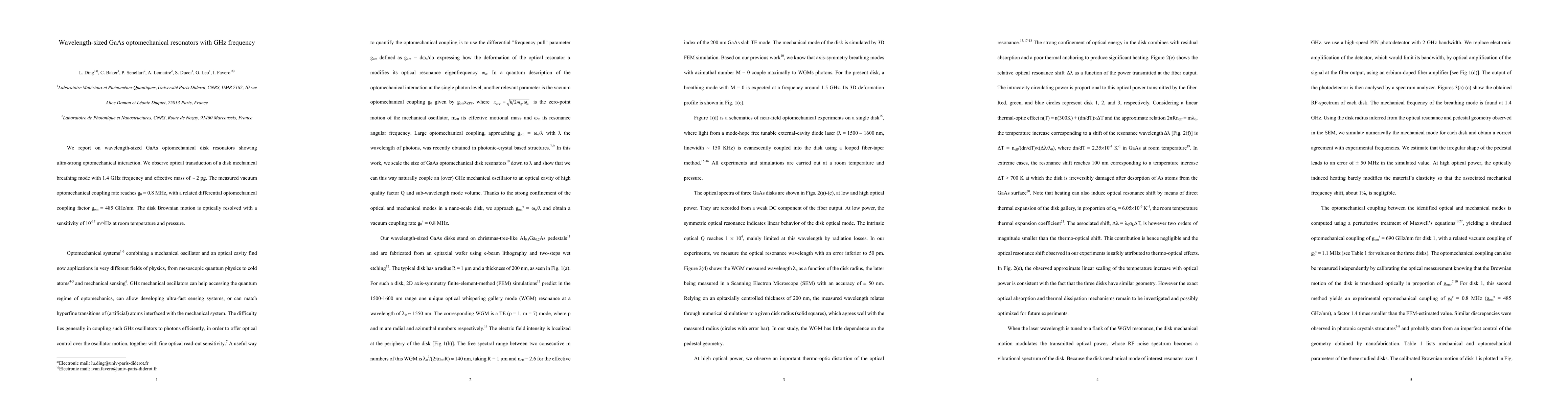 This paper reports on the development of wavelength-sized GaAs optomechanical disk resonators that exhibit ultra-strong optomechanical interaction, achieving a vacuum optomechanical coupling rate of 0.8 MHz and resolving the disk's Brownian motion with high sensitivity at room temperature.