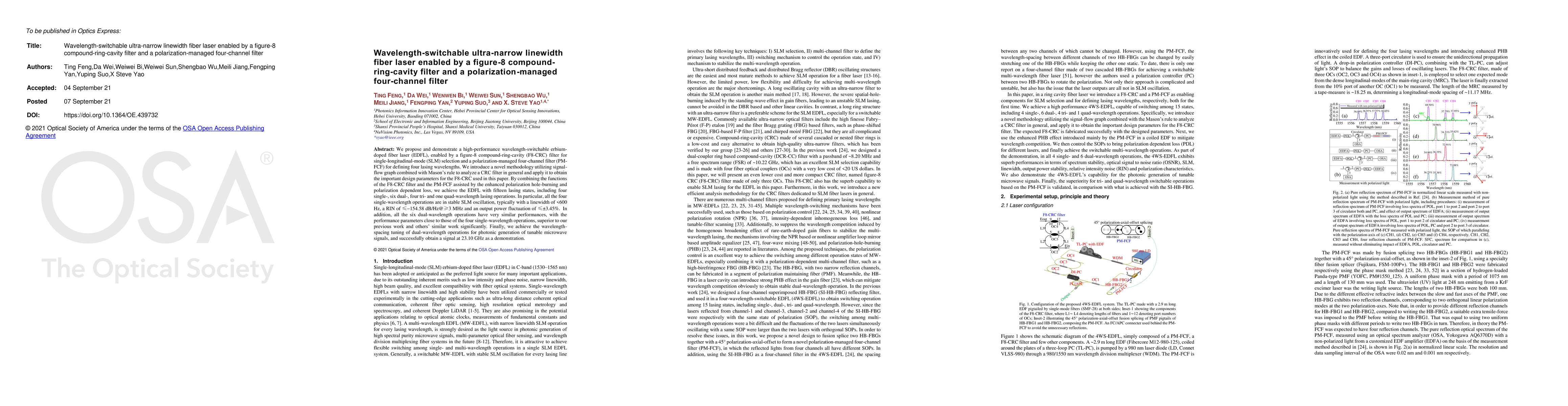 We propose and demonstrate a high performance four-wavelength erbium-doped fiber laser (EDFL), enabled by a figure-8 compound-ring-cavity (F8-CRC) filter for single-longitudinal-mode (SLM) selection and a polarization-managed four-channel filter (PM-FCF) for defining four lasing wavelengths. We introduce a novel methodology utilizing signal-flow graph combined with Mason's rule to analyze a CRC filter in general and apply it to obtain the important design parameters for the F8-CRC filter used in this paper. By combining the functions of the F8-CRC filter and the PM-FCF filter assisted by the enhanced polarization hole-burning and polarization dependent loss, we achieve the EDFL with fifteen lasing states, including four single-, six dual-, four tri- and one quad-wavelength lasing operations. In particular, all the four single-wavelength operations are in stable SLM oscillation, typically with a linewidth of <600 Hz, a RIN of <=-154.58 dB/Hz@>=3 MHz and an output power fluctuation of <=+/-3.45%. In addition, all the six dual-wavelength operations have very similar performances, with the performance parameters close to those of the single-wavelength lasing operations. Finally, we achieve the wavelength spacing tuning of the dual-wavelength operations for the photonic generation of tunable microwave signals, and successfully obtain a signal at 23.10 GHz as a demonstration.
