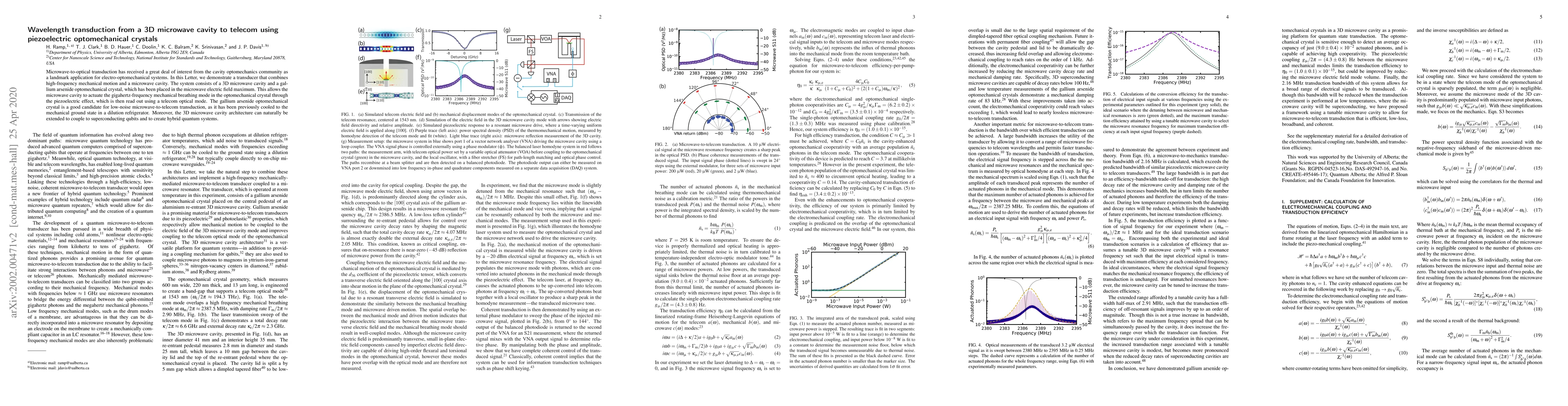 This paper presents a novel transducer that combines a 3D microwave cavity with a gallium arsenide optomechanical crystal to achieve microwave-to-optical transduction via piezoelectric effects, enabling efficient conversion of microwave signals to telecom frequencies. The system's potential for low-noise transduction and integration with quantum systems is highlighted.