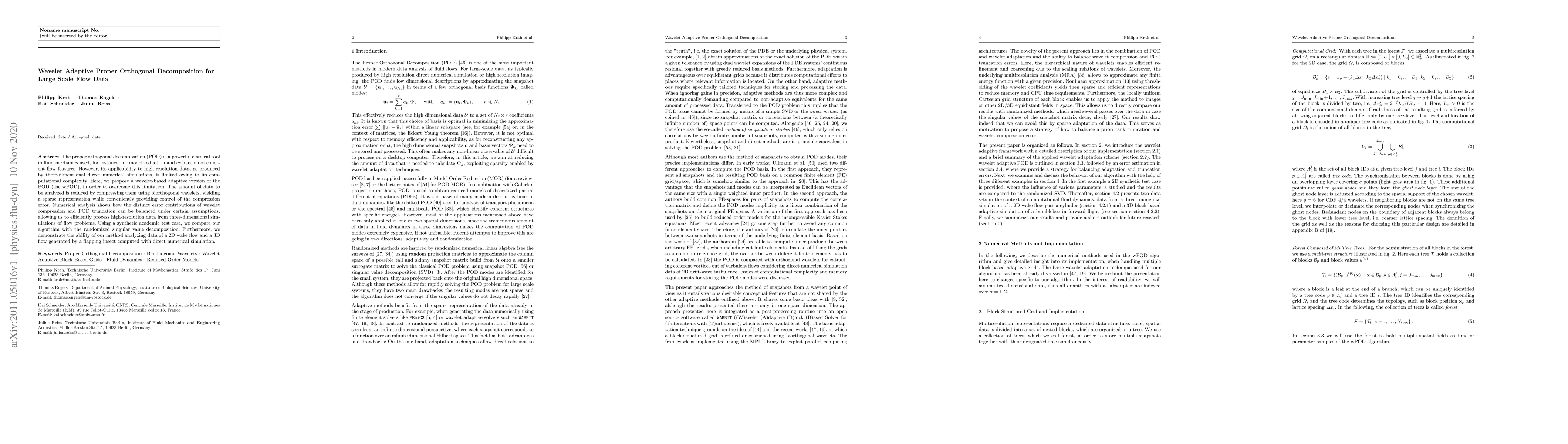 This paper proposes a wavelet-based adaptive version of proper orthogonal decomposition (wPOD) to efficiently process high-resolution flow data from simulations. The method compresses data using biorthogonal wavelets, balancing error contributions from compression and POD truncation for effective model reduction.