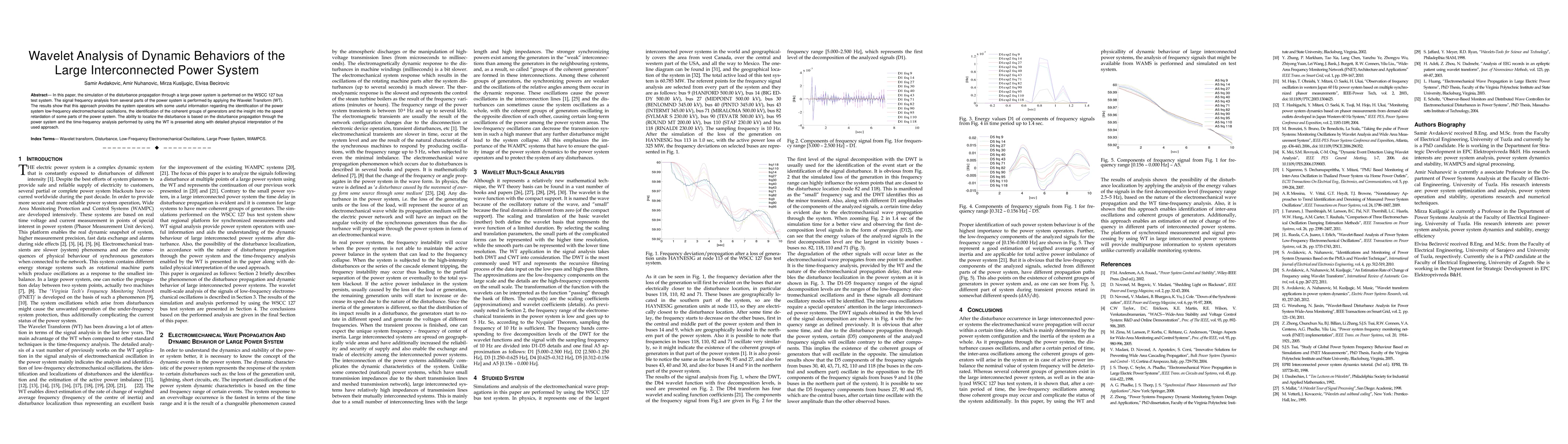 In this paper, the simulation of the disturbance propagation through a large power system is performed on the WSCC 127 bus test system. The signal frequency analysis from several parts of the power system is performed by applying the Wavelet Transform (WT). The results show that this approach provides the system operators with some useful information regarding the identification of the power system low-frequency electromechanical oscillations, the identification of the coherent groups of generators and the insight into the speed retardation of some parts of the power system. The ability to localize the disturbance is based on the disturbance propagation through the power system and the time-frequency analysis performed by using the WT is presented along with detailed physical interpretation of the used approach.