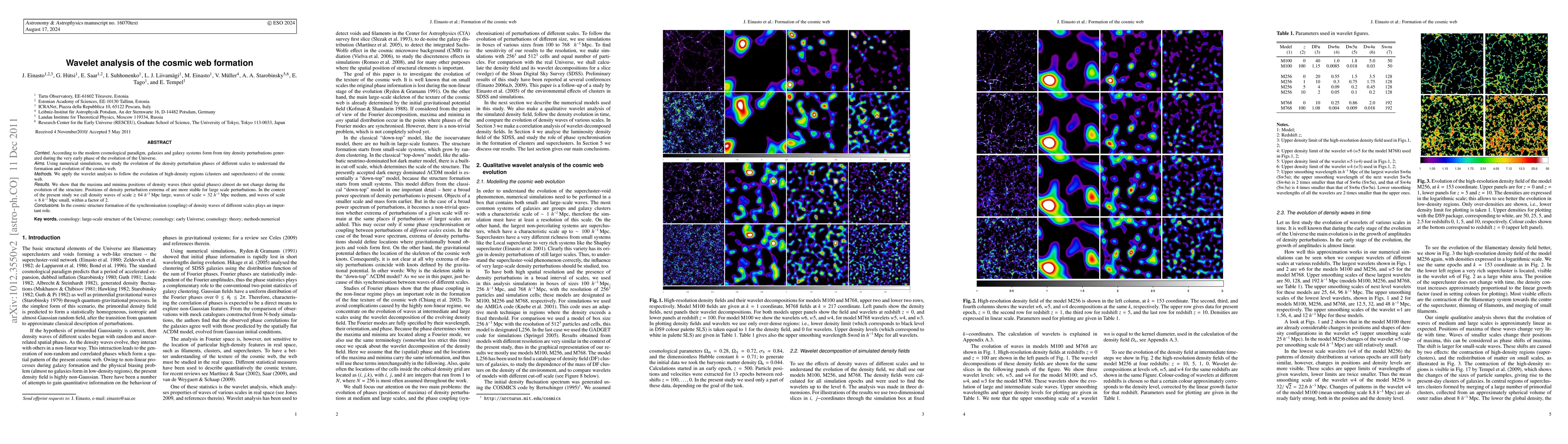 This paper uses wavelet analysis on numerical simulations to study the cosmic web's formation, revealing that the spatial phases of density perturbations remain stable over time, especially for larger wavelengths. The findings suggest the cosmic web's skeleton was established early in the universe's evolution.