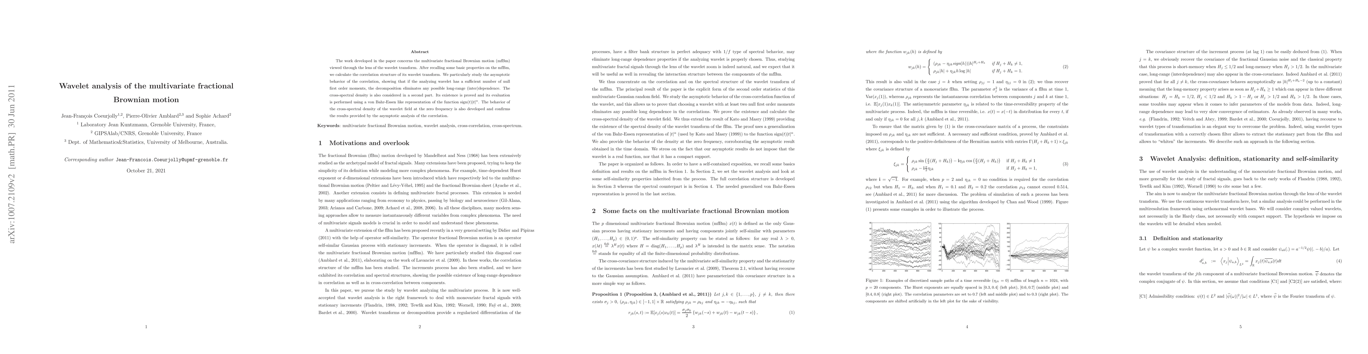 This paper investigates the wavelet analysis of multivariate fractional Brownian motion (mfBm) and demonstrates how wavelet transforms can eliminate long-range dependence when the analyzing wavelet has sufficient null first-order moments. The study also proves the existence of the cross-spectral density and evaluates it using a von Bahr-Essen representation.