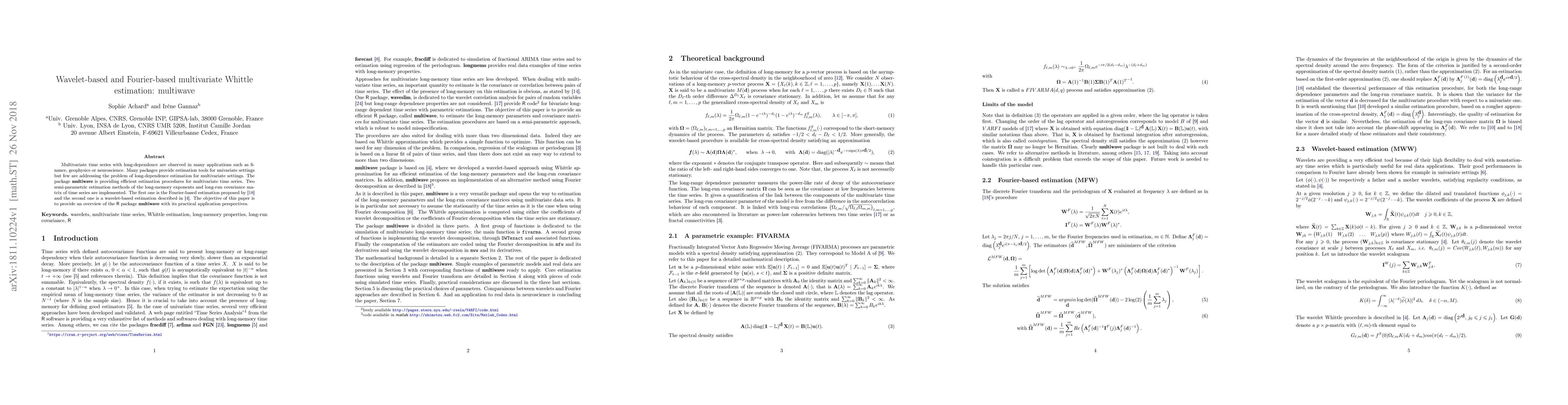 The paper introduces the R package multiwave, which provides efficient estimation methods for multivariate time series with long-dependence, implementing both Fourier-based and wavelet-based semi-parametric approaches. The objective is to offer practical application perspectives for estimating long-memory exponents and long-run covariance matrices.