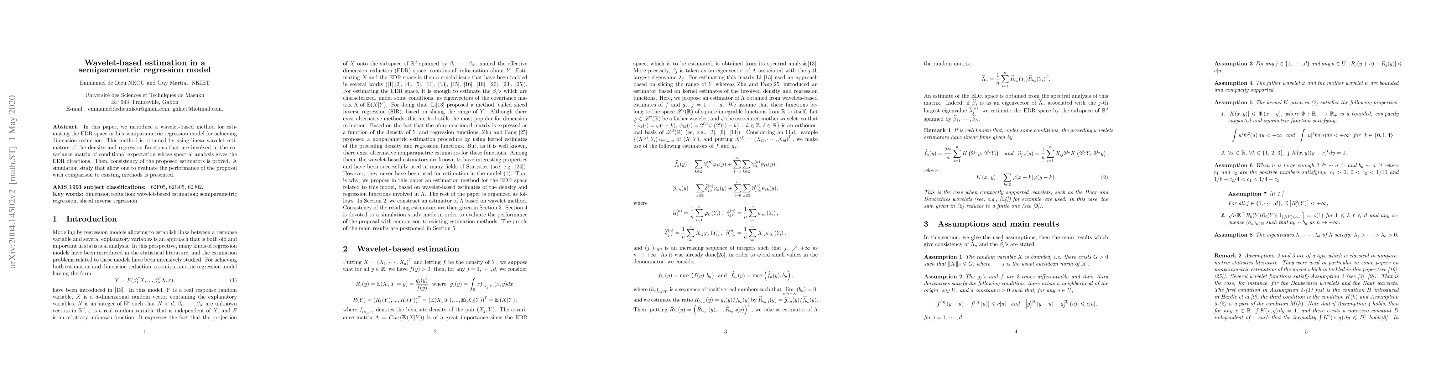 This paper introduces a wavelet-based method to estimate dimension reduction in Li's semiparametric regression model, improving upon existing methods through spectral analysis of conditional expectation. The proposed method is shown to be consistent and its performance is evaluated through simulation studies.