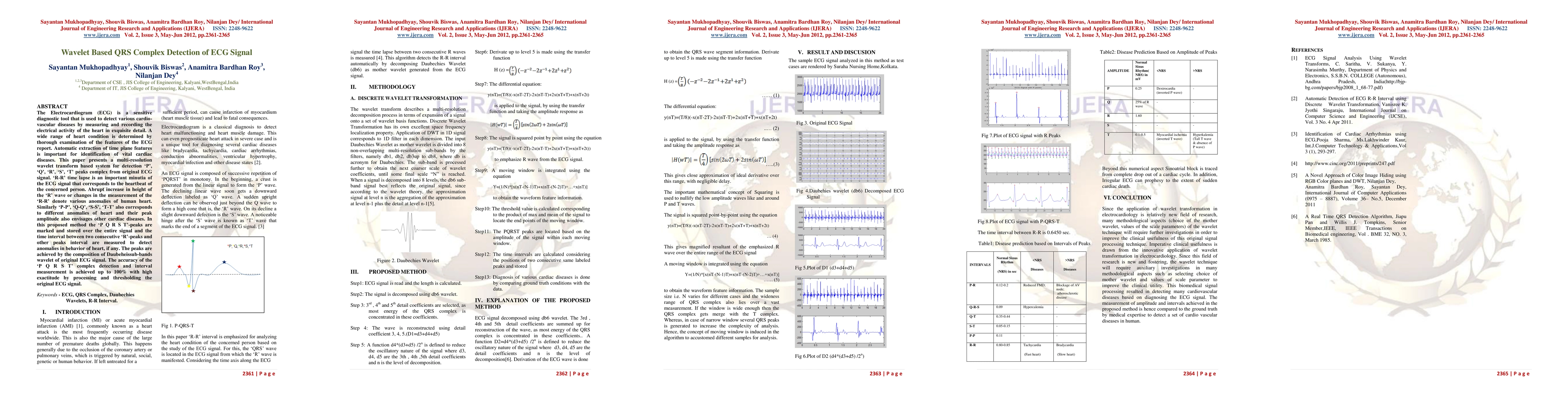 This paper proposes a wavelet transform-based system for detecting 'PQRST' peaks in ECG signals to identify cardiovascular anomalies. The method achieves 100% accuracy in peak detection and interval measurement, aiding in the diagnosis of various heart conditions.