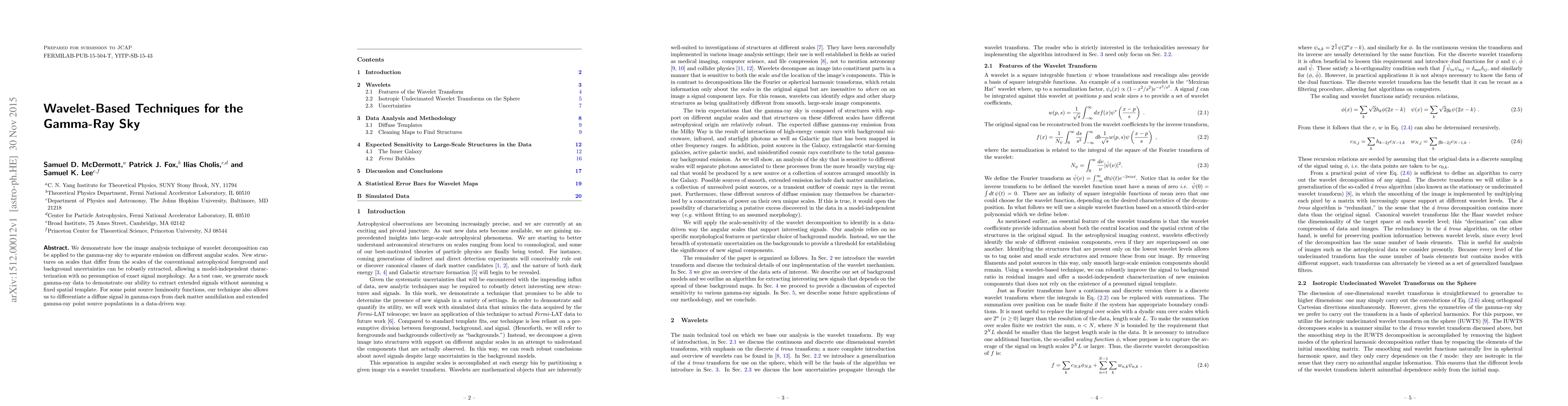 A new method uses wavelet decomposition to analyze gamma-ray sky data, allowing for detection of hidden structures on different scales without assuming a fixed signal morphology. This technique can also distinguish between diffuse signals and point sources, including dark matter annihilation.