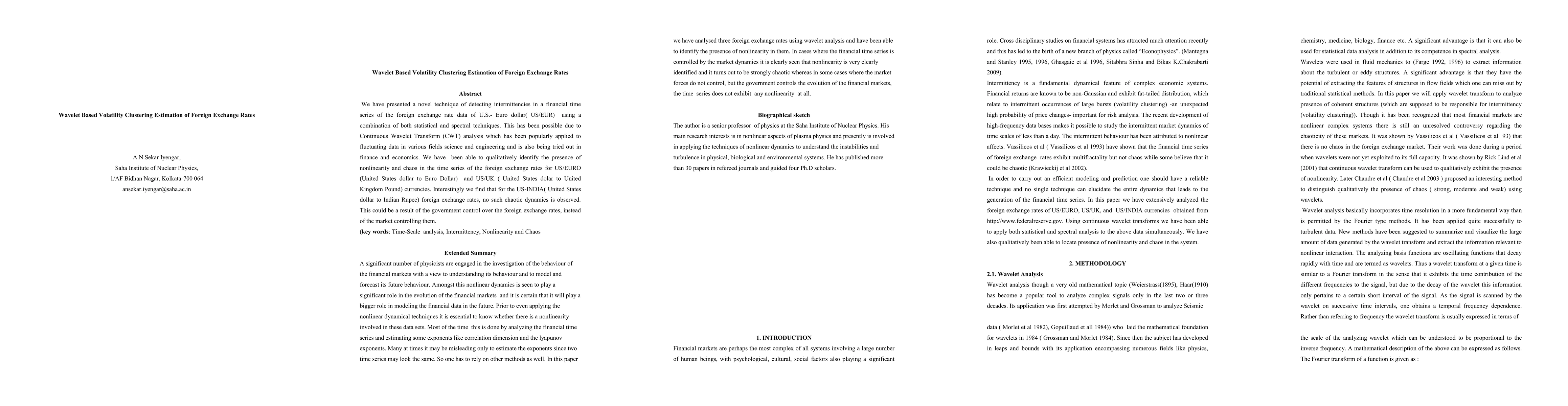 This paper introduces a wavelet-based method to detect volatility clustering in foreign exchange rates using Continuous Wavelet Transform (CWT) analysis. It identifies nonlinearity and chaos in the US/EUR and US/UK exchange rates but finds no chaotic dynamics in US/INR rates, possibly due to government control over the latter.