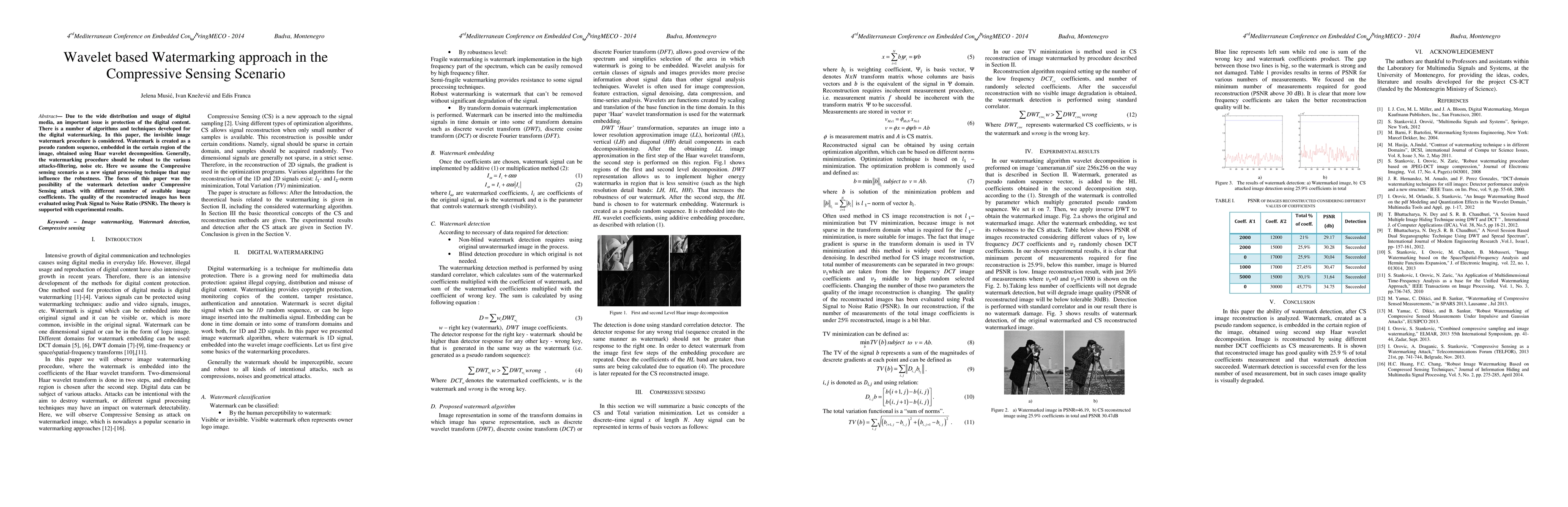 The paper presents a novel method of embedding invisible watermarks in images using Haar wavelet decomposition, specifically targeting robustness against Compressive Sensing attacks.