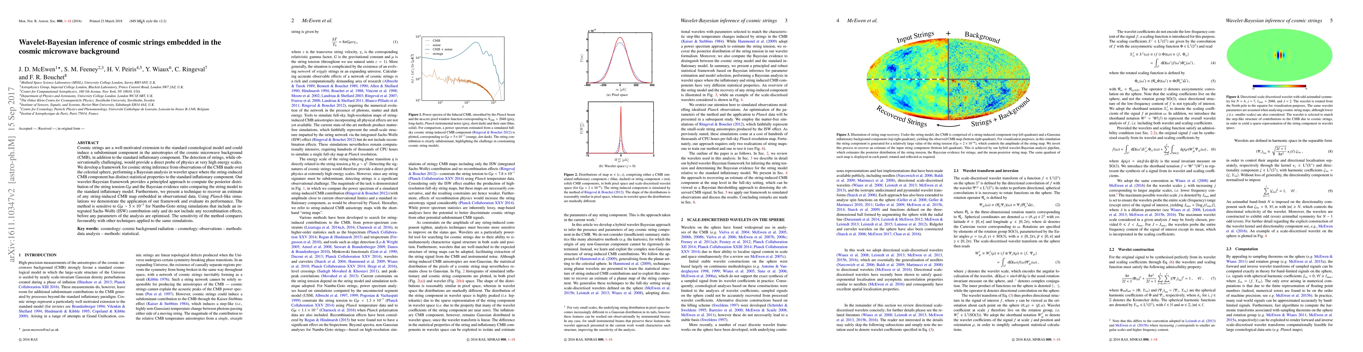 This paper develops a wavelet-Bayesian inference framework to detect cosmic strings in the cosmic microwave background (CMB) and estimates their tension. The method shows promising sensitivity to string tensions around $G\mu \sim 5 \times 10^{-7}$ and compares favorably with other detection techniques.