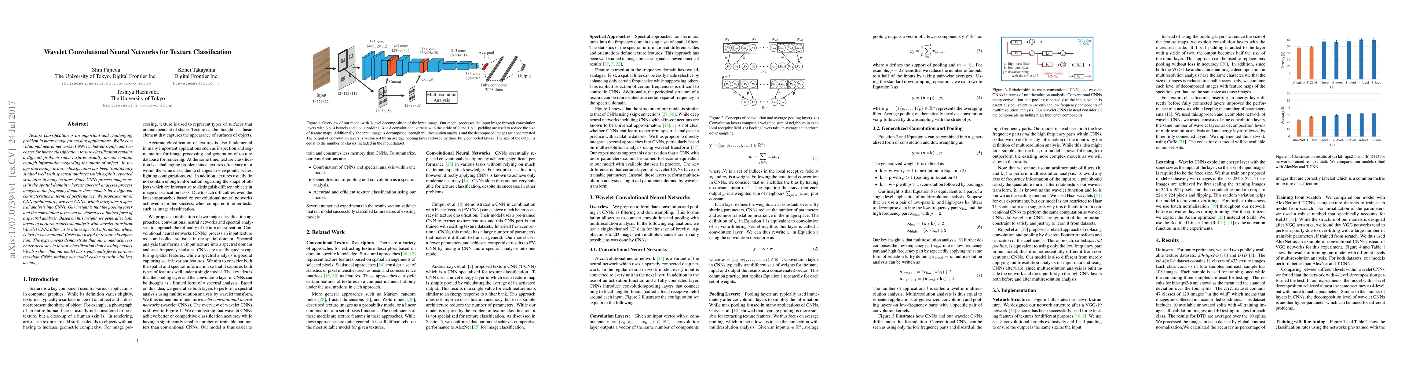 This paper proposes wavelet convolutional neural networks (CNNs) to enhance texture classification by integrating spectral analysis through wavelet transforms. The model achieves higher accuracy and requires fewer parameters compared to traditional CNNs, making it more efficient for texture-based tasks.