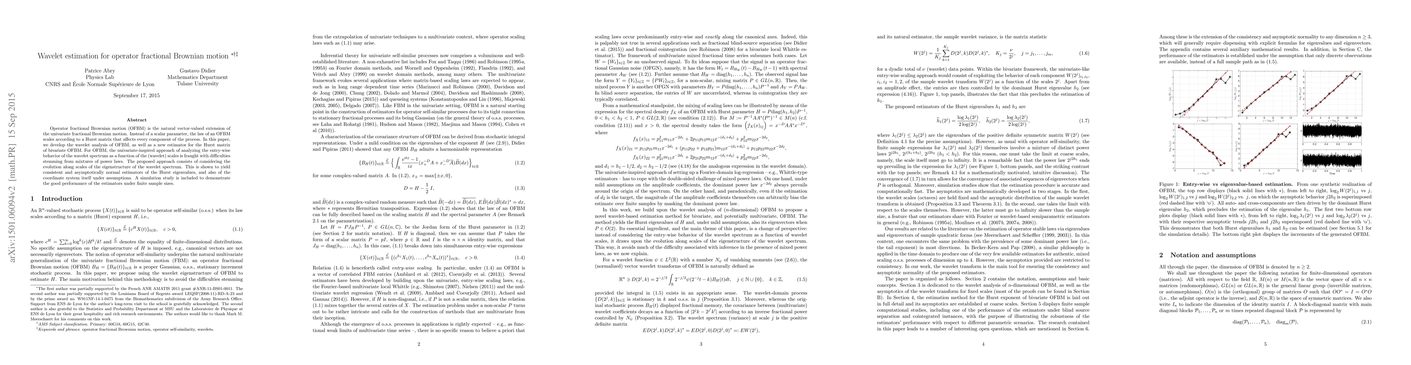 This paper develops wavelet analysis for operator fractional Brownian motion (OFBM) and proposes a new estimator for the Hurst matrix in bivariate OFBM. The approach considers the evolution of the eigenstructure of the wavelet spectrum across scales, yielding consistent and asymptotically normal estimators for the Hurst eigenvalues and the coordinate system, validated through a simulation study.