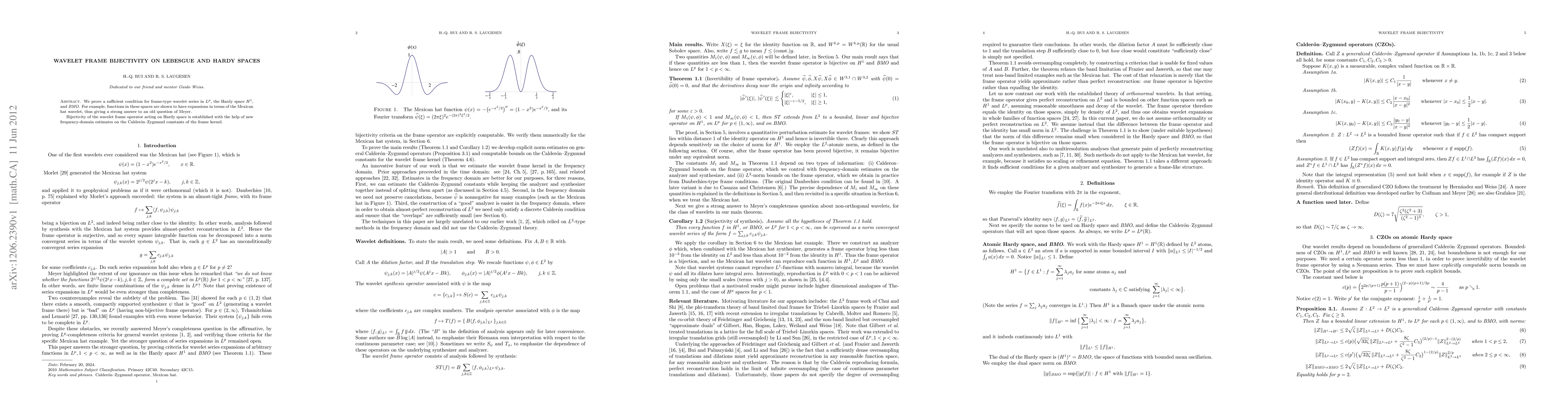 We prove a sufficient condition for frame-type wavelet series in $L^p$, the Hardy space $H^1$, and BMO. For example, functions in these spaces are shown to have expansions in terms of the Mexican hat wavelet, thus giving a strong answer to an old question of Meyer. Bijectivity of the wavelet frame operator acting on Hardy space is established with the help of new frequency-domain estimates on the Calder\'on-Zygmund constants of the frame kernel.