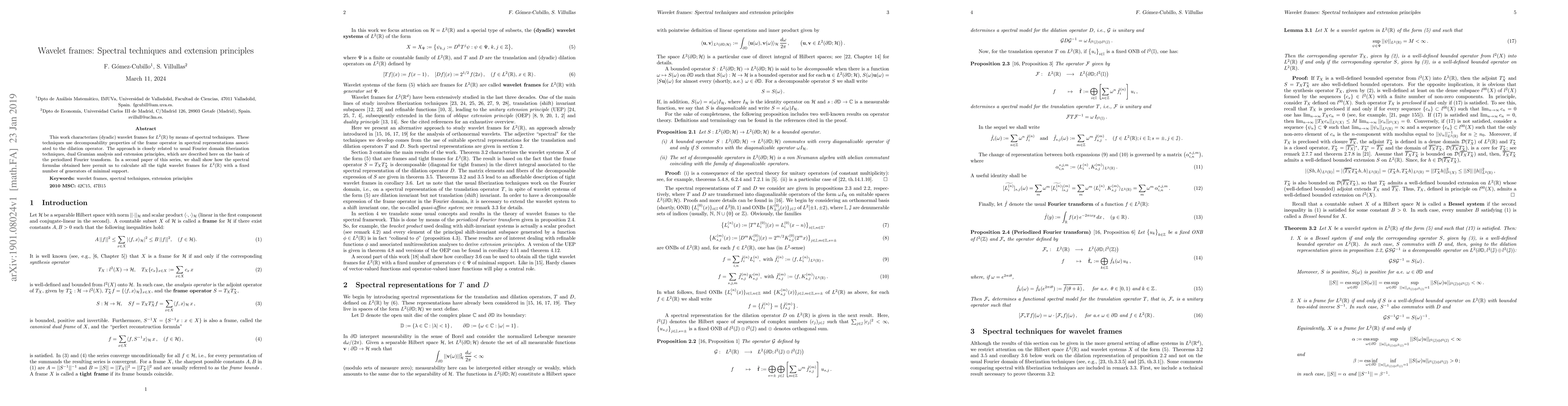 This paper characterizes dyadic wavelet frames in $L^2({\mathbb R})$ using spectral techniques and extension principles, focusing on the decomposability of the frame operator. It lays the groundwork for calculating tight wavelet frames with minimal support in a subsequent paper.