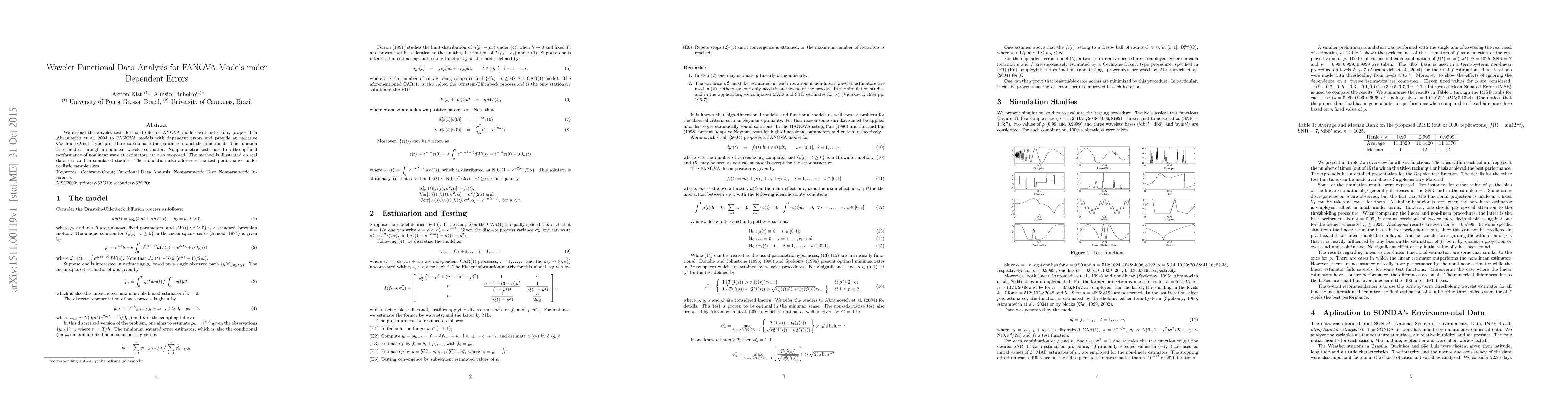 This paper extends wavelet tests for FANOVA models to handle dependent errors, proposing an iterative estimation procedure and nonlinear wavelet estimators. It also introduces nonparametric tests based on the performance of these estimators, demonstrating the method with real and simulated data.