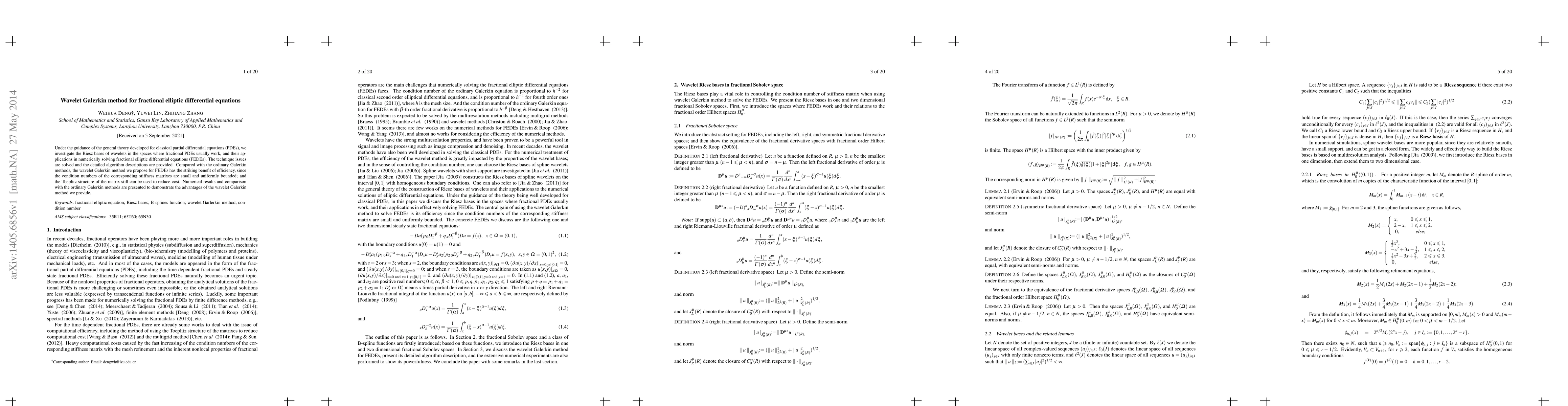 This paper proposes a wavelet Galerkin method for solving fractional elliptic differential equations (FEDEs), leveraging the efficiency of wavelet bases. The method demonstrates superior performance compared to ordinary Galerkin methods due to small, uniformly bounded condition numbers and the use of Toeplitz structure for cost reduction, as shown through numerical comparisons.