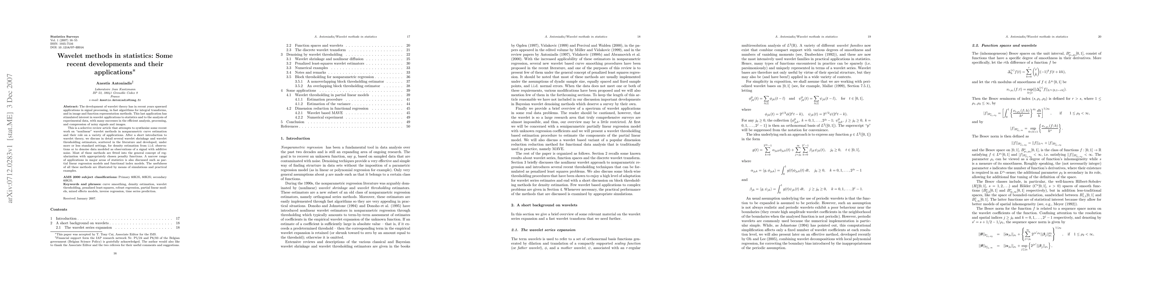 This paper reviews recent advancements in wavelet methods for statistical analysis, focusing on wavelet shrinkage and thresholding techniques for nonparametric curve estimation and denoising. It highlights applications in partial linear regression and functional index models, supported by simulations and practical examples.