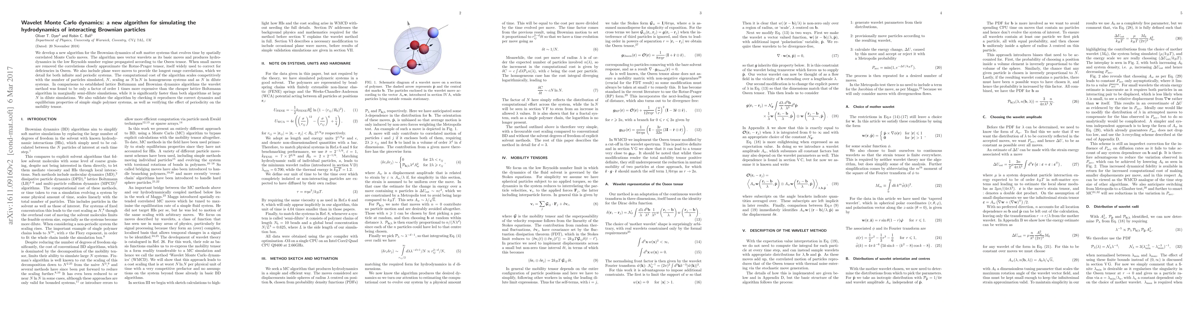 We develop a new algorithm for the Brownian dynamics of soft matter systems that evolves time by spatially correlated Monte Carlo moves. The algorithm uses vector wavelets as its basic moves and produces hydrodynamics in the low Reynolds number regime propagated according to the Oseen tensor. When small moves are removed the correlations closely approximate the Rotne-Prager tensor, itself widely used to correct for deficiencies in Oseen. We also include plane wave moves to provide the longest range correlations, which we detail for both infinite and periodic systems. The computational cost of the algorithm scales competitively with the number of particles simulated, $N$, scaling as $N\ln N$ in homogeneous systems and as $N$ in dilute systems. In comparisons to established lattice Boltzmann and Brownian dynamics algorithms the wavelet method was found to be only a factor of order 1 times more expensive than the cheaper lattice Boltzmann algorithm in marginally semi-dilute simulations, while it is significantly faster than both algorithms at large $N$ in dilute simulations. We also validate the algorithm by checking it reproduces the correct dynamics and equilibrium properties of simple single polymer systems, as well as verifying the effect of periodicity on the mobility tensor.
