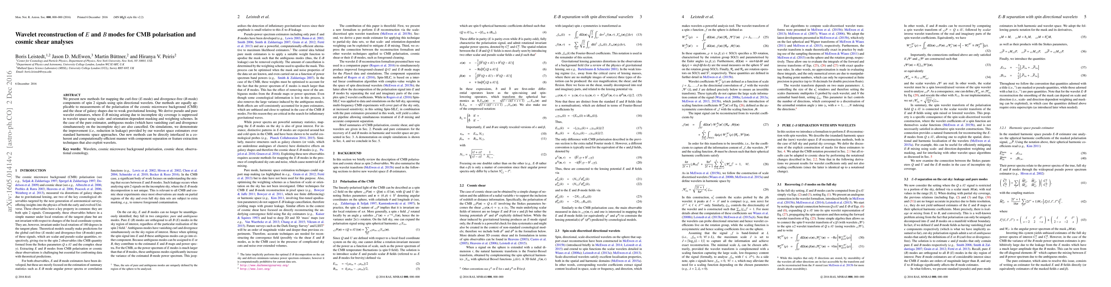 This paper introduces novel wavelet-based methods for reconstructing E and B modes in CMB polarization and cosmic shear analyses, effectively reducing leakage and improving signal separation compared to traditional harmonic space techniques. The proposed wavelet estimators utilize scale- and orientation-dependent masking to minimize E-B mixing and cancel ambiguous modes on incomplete sky coverage.