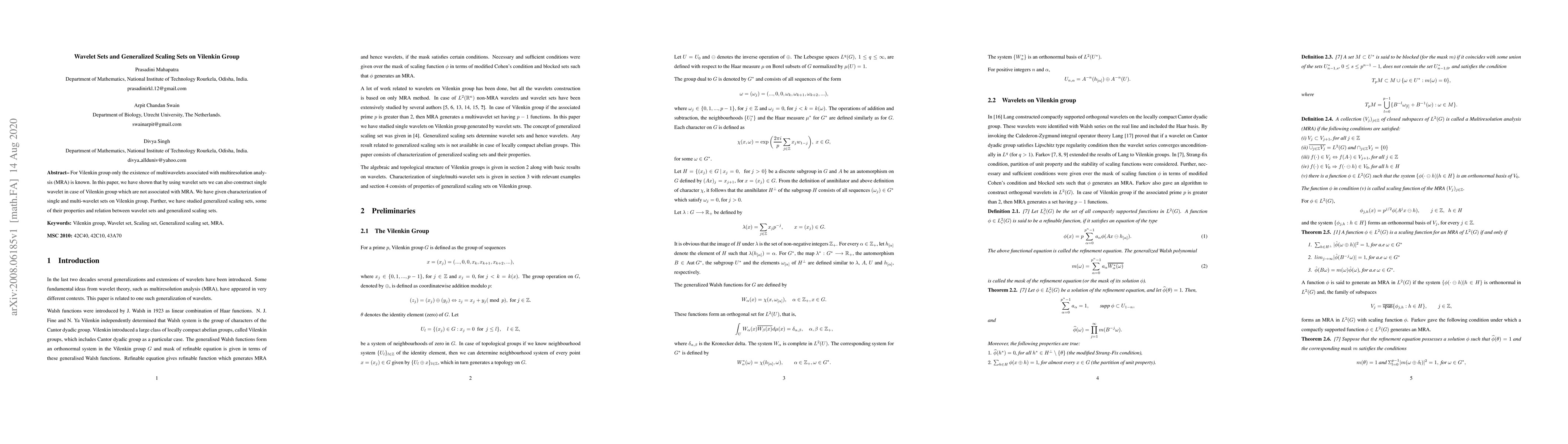 This paper demonstrates the construction of single wavelets on the Vilenkin group using wavelet sets, independent of multiresolution analysis. It also characterizes both single and multi-wavelet sets and explores generalized scaling sets, their properties, and their relationship with wavelet sets.