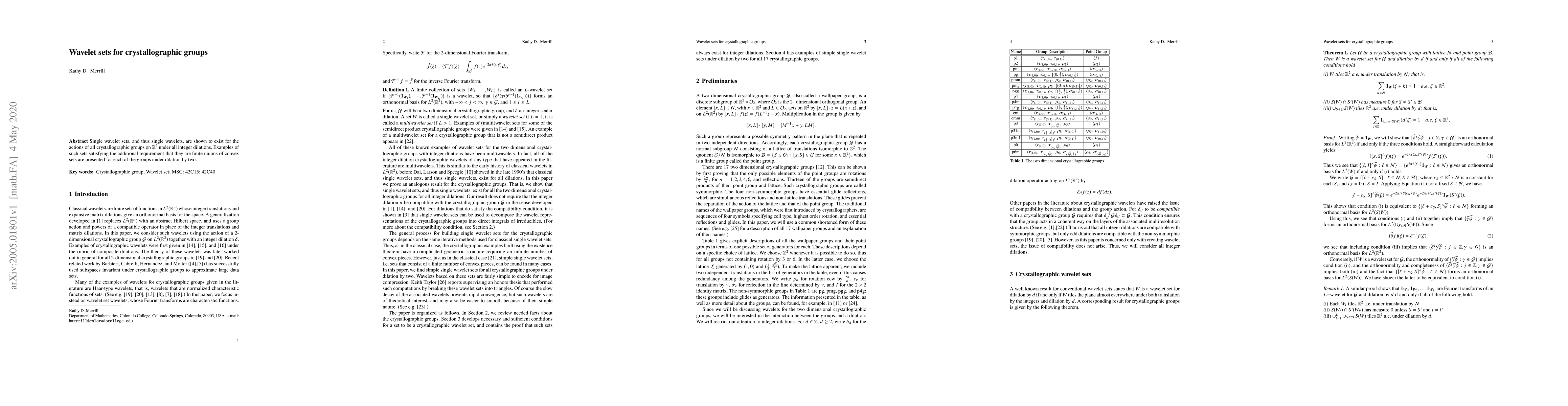 This paper demonstrates the existence of single wavelet sets for all crystallographic groups acting on $\mathbb R^2$ under integer dilations, and provides examples of these sets as finite unions of convex sets for dilation by two.