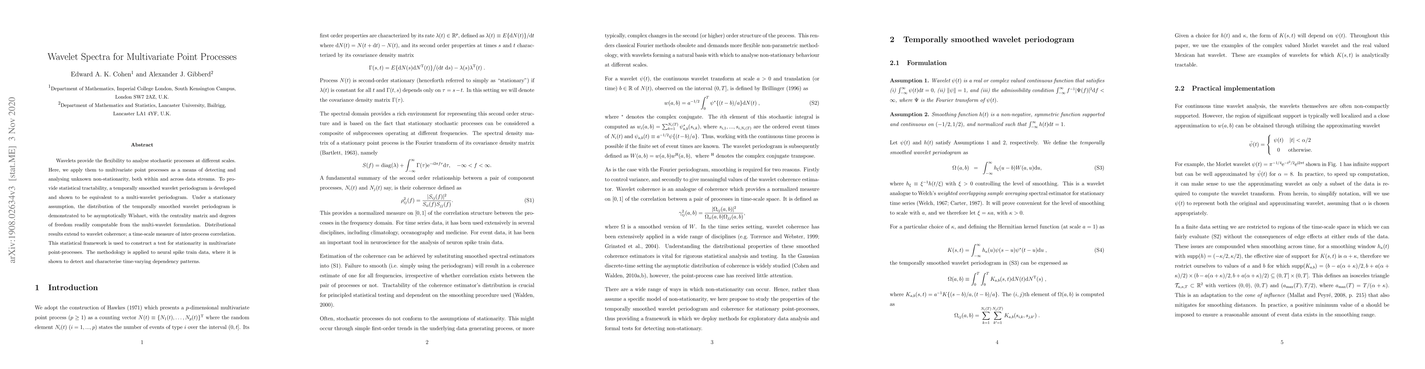 Wavelets provide the flexibility to analyse stochastic processes at different scales. Here, we apply them to multivariate point processes as a means of detecting and analysing unknown non-stationarity, both within and across data streams. To provide statistical tractability, a temporally smoothed wavelet periodogram is developed and shown to be equivalent to a multi-wavelet periodogram. Under a stationary assumption, the distribution of the temporally smoothed wavelet periodogram is demonstrated to be asymptotically Wishart, with the centrality matrix and degrees of freedom readily computable from the multi-wavelet formulation. Distributional results extend to wavelet coherence; a time-scale measure of inter-process correlation. This statistical framework is used to construct a test for stationarity in multivariate point-processes. The methodology is applied to neural spike train data, where it is shown to detect and characterise time-varying dependency patterns.