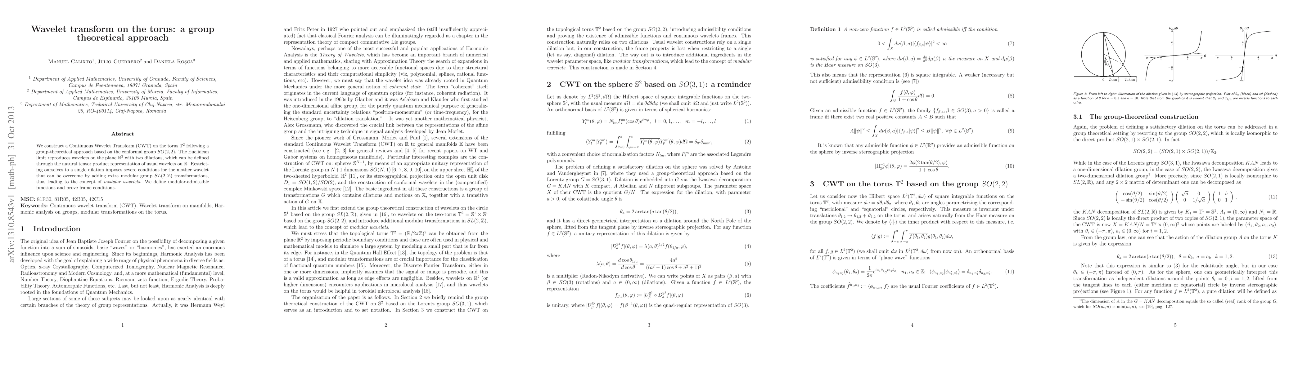 This paper constructs a Continuous Wavelet Transform on the torus using a group-theoretical approach based on the conformal group $SO(2,2)$, leading to wavelets on the plane $\mathbb R^2$ with two dilations. It introduces modular wavelets by incorporating $SL(2,\mathbb Z)$ transformations to overcome restrictions on the mother wavelet, and proves frame conditions for modular-admissible functions.