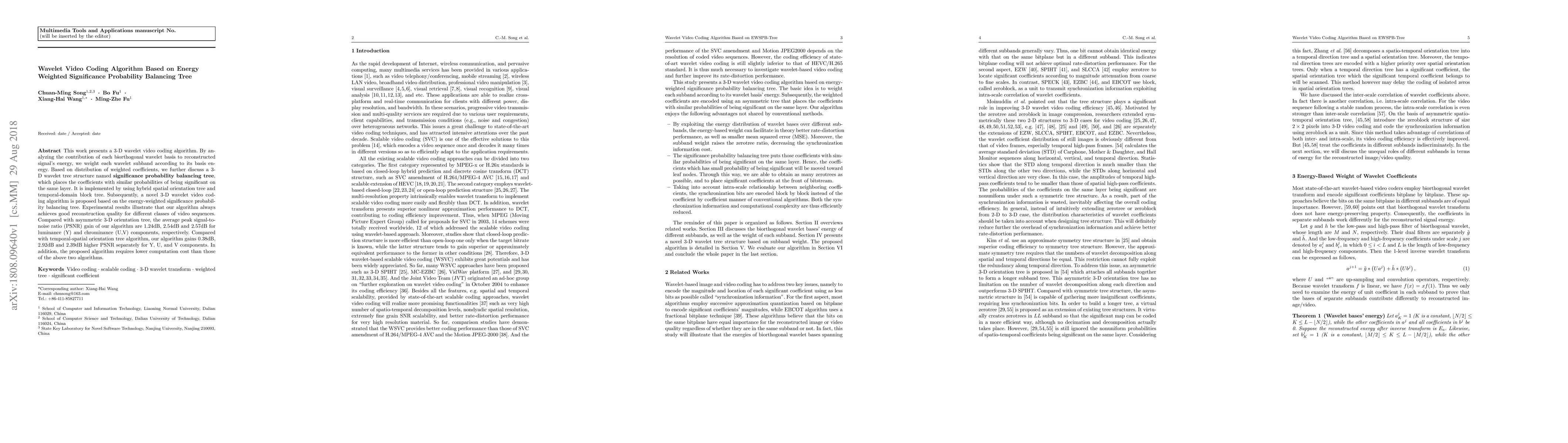 A new 3D wavelet video coding algorithm is proposed that improves reconstruction quality by weighing wavelet subbands based on their energy contribution and organizing coefficients according to probability distribution.