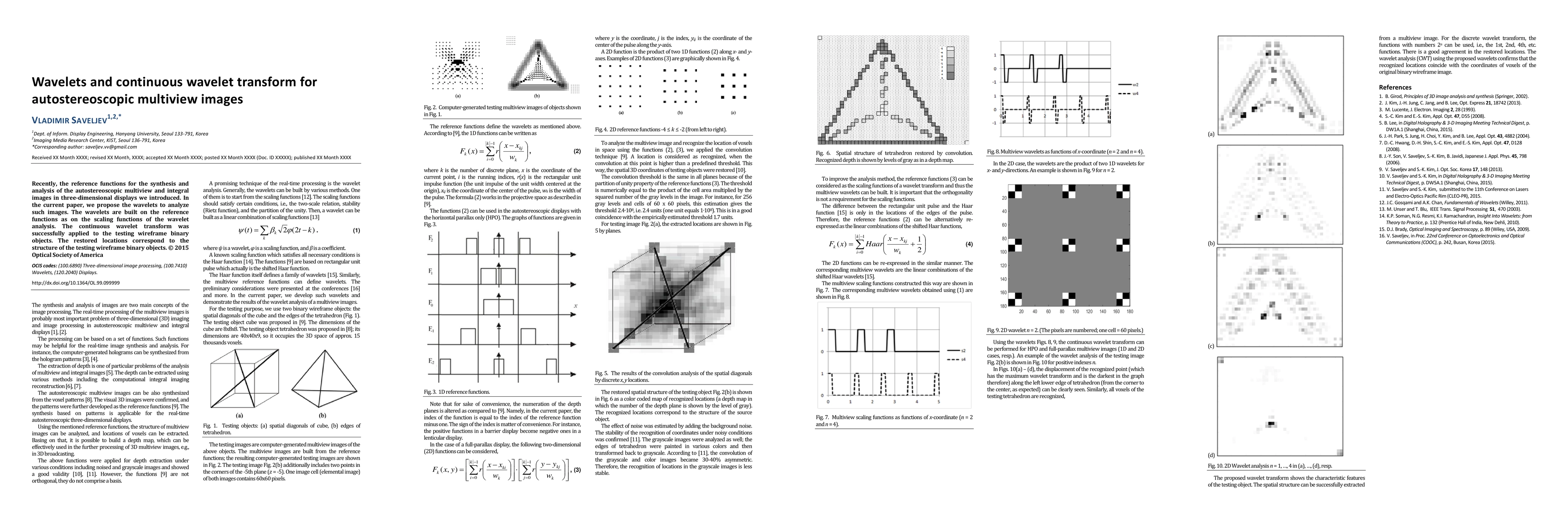 This paper proposes wavelets based on reference functions for analyzing autostereoscopic multiview images in 3D displays, demonstrating successful application of the continuous wavelet transform to wireframe binary objects, with restored locations matching the object structures.