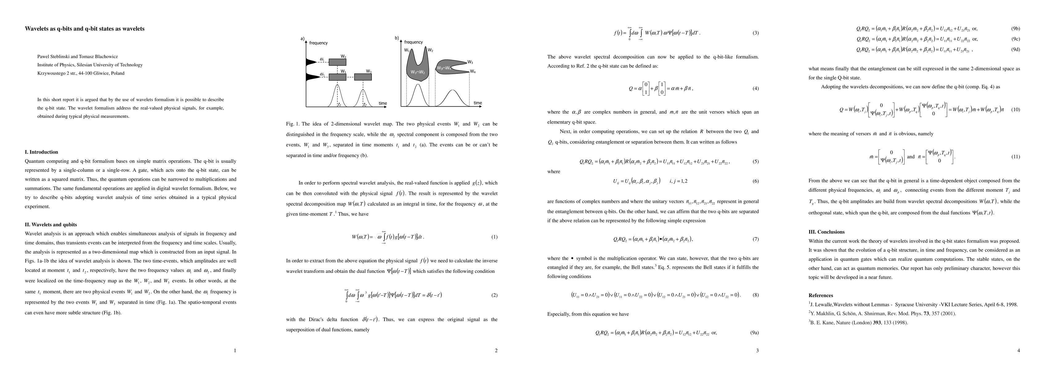In this short report it is argued that by the use of wavelets formalism it is possible to describe the q-bit state. The wavelet formalism address the real-valued physical signals, for example, obtained during typical physical measurements.