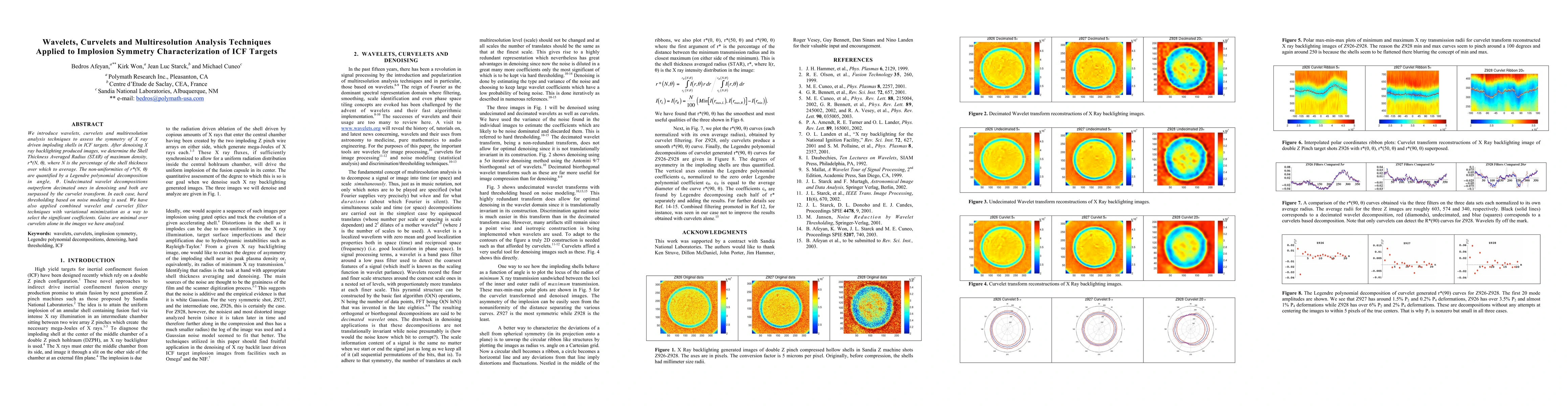 Researchers applied wavelet and curvelet transforms to analyze symmetry in ICF targets, finding that curvelets outperformed wavelets in denoising and image analysis.
