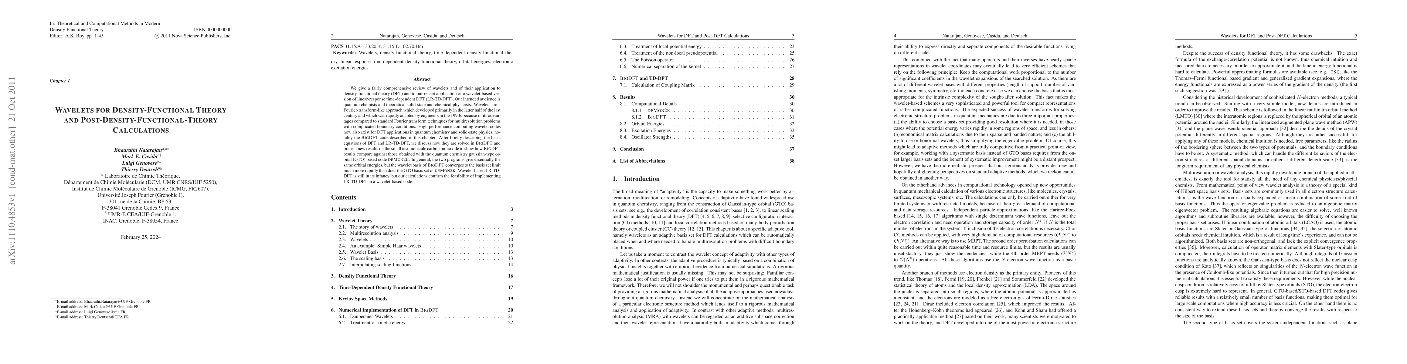 This paper reviews wavelet applications in density-functional theory (DFT) and linear-response time-dependent DFT (LR-TD-DFT) for quantum chemistry and solid-state physics. The BigDFT code demonstrates superior convergence of wavelet basis compared to Gaussian-type orbitals, and initial LR-TD-DFT calculations show promising results.