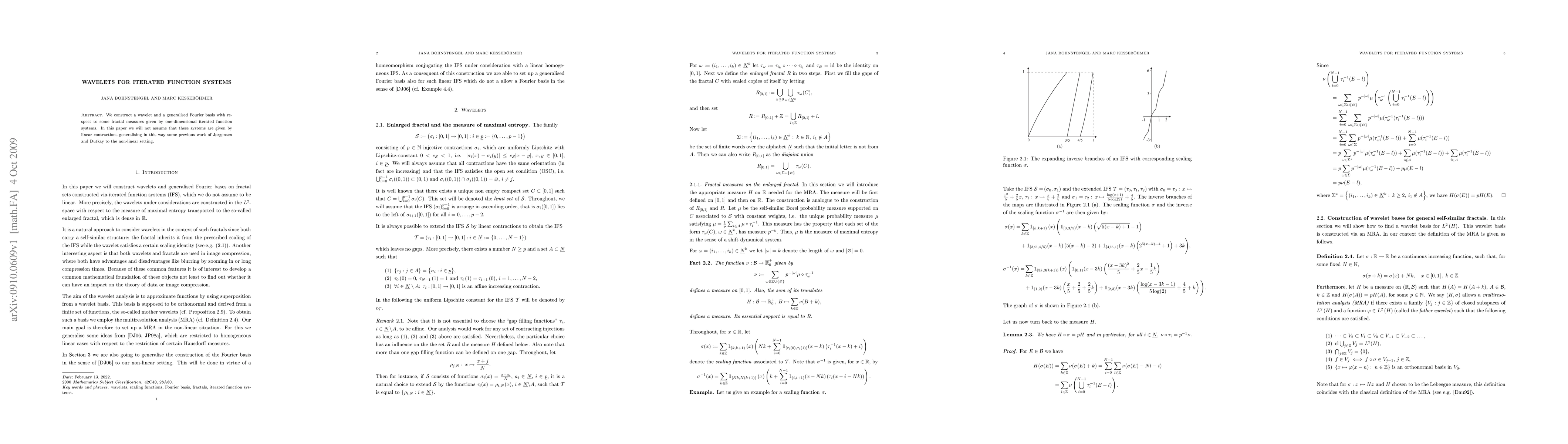 We construct a wavelet and a generalised Fourier basis with respect to some fractal measures given by one-dimensional iterated function systems. In this paper we will not assume that these systems are given by linear contractions generalising in this way some previous work of Jorgensen and Dutkay to the non-linear setting.