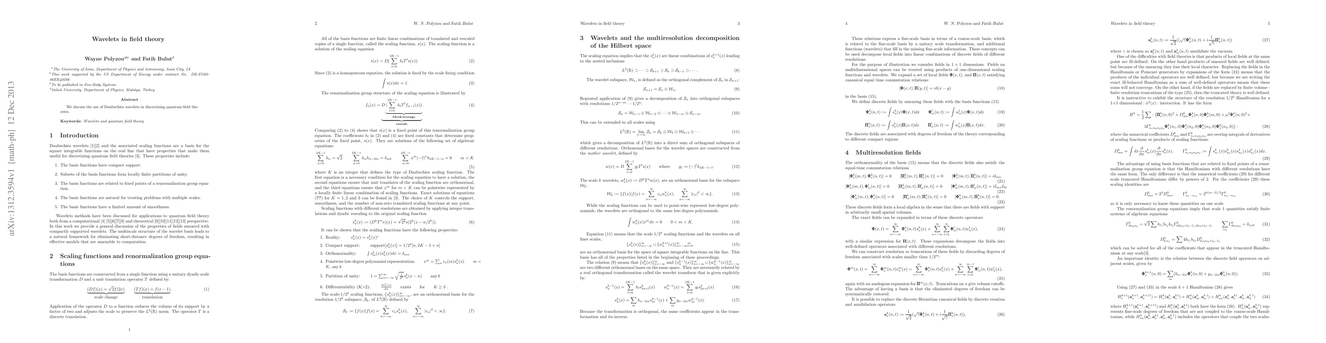 Summary: This paper explores the application of Daubechies wavelets for discretizing quantum field theories, providing a novel approach to solving complex field equations. The method aims to enhance computational efficiency and accuracy in theoretical physics.