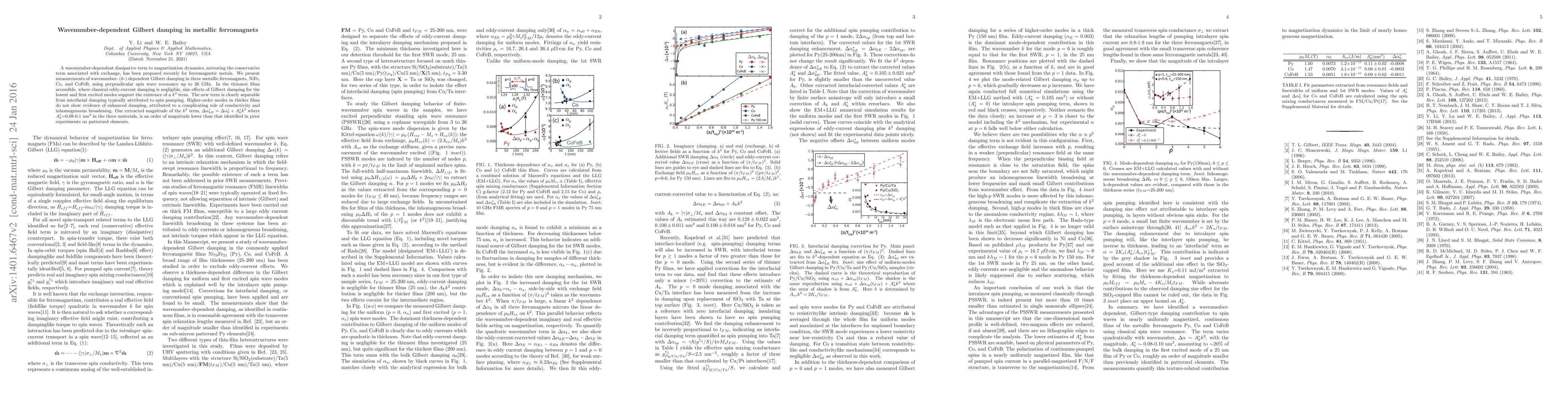 This paper investigates wavenumber-dependent Gilbert damping in metallic ferromagnets, showing a finite-wavenumber ($k$) dependent term with a $k^2$ dependence in three ferromagnets: Ni$_{79}$Fe$_{21}$, Co, and Co$_{40}$Fe$_{40}$B$_{20}$. The study associates this new term with spin pumping and finds its magnitude consistent with transverse spin relaxation lengths.