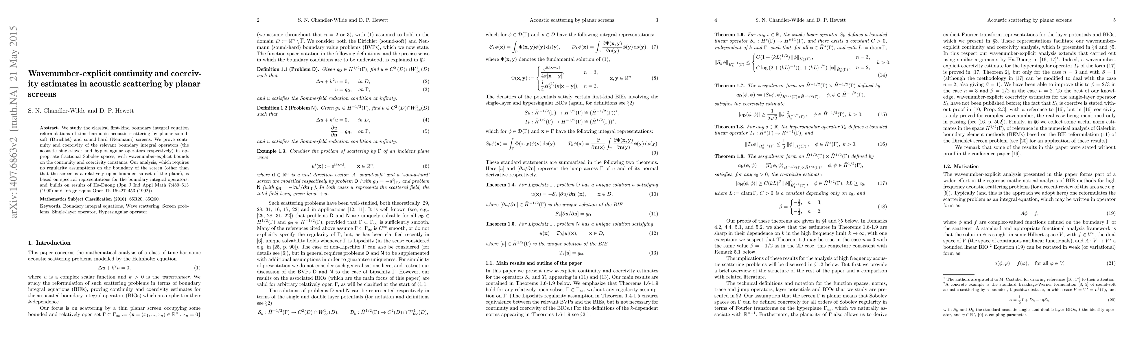 This paper proves continuity and coercivity of boundary integral operators for acoustic scattering by sound-soft and sound-hard planar screens, with explicit bounds on these properties depending on the wavenumber. The analysis leverages spectral representations and builds on prior work by Ha-Duong.
